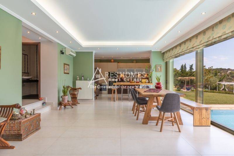 Property Code: 1-511 - Villa FOR SALE in Kouvaras Neos Kouvaras for € 800.000 . This 375.00 sq. m. furnished Villa consists of 3 levels and features 4 Bedrooms, an open-plan kitchen/living room, 3 bathrooms and a WC. The property also boasts Heating system: Autonomous heating - Oil, tiled and wood floors, view of the Mountain, Window frames: Aluminium, Armourplated door, a storage unit sqm, garden, fireplace, jacuzzi, swimming pool, A/C, alarm system, awnings, insect screens, double-glazed windows, solar-powered water heater, BBQ, dressing room. The building was constructed in 2005 Plot area: 5500 s.q. . Building Energy Rating: A