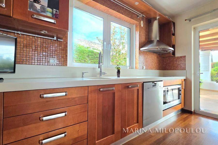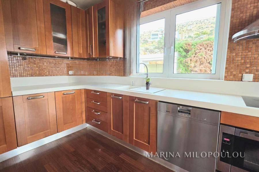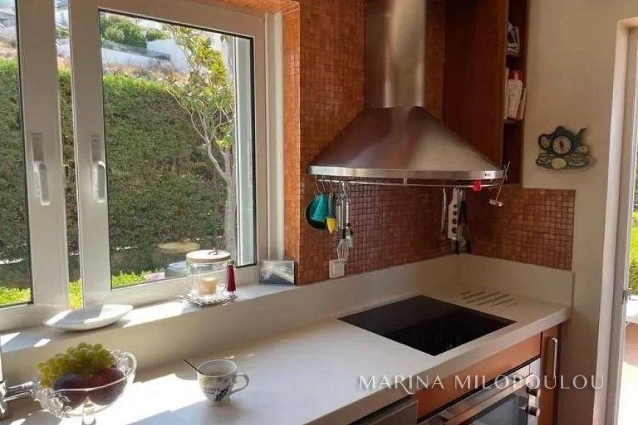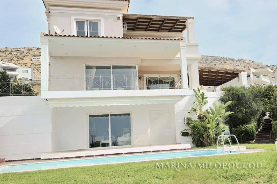 SARONIDA – Detached three-level residence with a total surface of 255 sq.m., set on a 600 sq.m. plot, featuring a garden, swimming pool, and panoramic sea views. - Ground floor: Living room with fireplace, kitchen, 1 en-suite bedroom, laundry room, and direct access to the pool and garden. - 1st floor: Reception area with fireplace, dining area, kitchen, large terrace with panoramic sea views, outdoor living and dining area with BBQ. Access to the garden and pool level via internal and external staircases. - 2nd floor: 2 en-suite bedrooms (one master with walk-in closet), terrace with panoramic sea views. The property offers autonomus oil heating per floor, elevator, aluminum window frames with double glazing and insect screens, oak flooring in bedrooms and tiled floors in all other areas, security door, two fireplaces, air conditioning units, alarm system, awnings, video intercom, internal staircase, boiler, BBQ, playroom, laundry room, parking space, and storage room. Zone price 1700€ Distances: 1.6 km from Saronida Beach, 1.3 km from the town center with shops, cafés, and restaurants, 5 km from Palaia Fokaia Beach, 5.4 km from Grand Beach Lagonissi, 18 km from the Port of Lavrio, 20 km from Sounio Posidon temple and 27 km from Athens International Airport A high-quality seaside residence combining privacy, comfort, and unobstructed sea views.