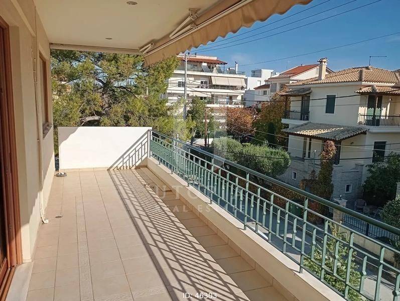 Kifissia, Agia Kyriaki - Apartment 126sqm plot 402sqm, unfurnished, bedrooms 3, levels 1, 1st, excellent condition, year built 2006, energy class D, living room, hall, kitchen, bathroom, wc, heating type: autonomous (oil), parking open space, quiet, dual aspect apartment, luminous, unobstructed view view, frontage, storage space, fireplace, balconies, large balconies, tents, elevator, garden, aluminum frames, double glazed windows, stone floors, separate kitchen, residential zone, access from asphalt, close to market (up to 1000m).
