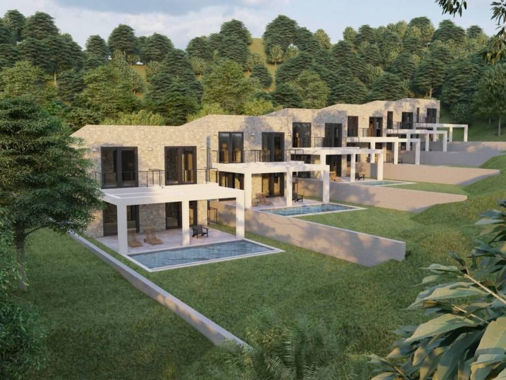 For sale brand-new luxury detached house of 150 sq.m., construction year 2026, set on a private plot of 900 sq.m., in a quiet and privileged location in Hanioti, just 5 minutes from the town center. The property is developed over 3 levels and features: 5 bedrooms 2 kitchens 3 bathrooms Storage room Private garden Private swimming pool 2 covered parking spaces It offers unobstructed views of the sea, mountain, and forest, combining natural beauty with privacy and tranquility. Built with high-end luxury materials and modern construction standards. Distance from the sea: 1,400 meters. An ideal choice for: Permanent or holiday residence High-end touristic investment ✅ Eligible for Golden Visa