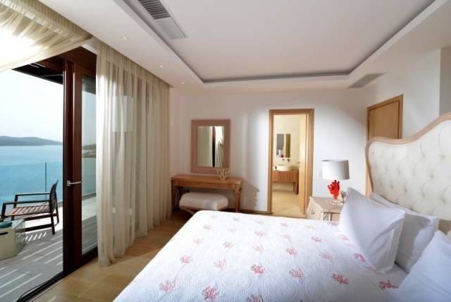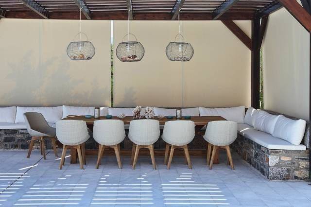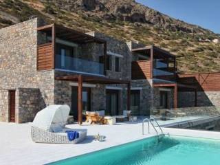 Luxury 412 m² seaside villa is available for sale and is located 4 km from cosmopolitan Elounda, 14 km from Aghios Nikolaos and 75 km from Heraklion Airport and city. It sits on a 2,337 m² plot in Plaka, offering unobstructed views of Elounda Bay and the famous island of Spinalonga. The property is designed to maintain a high level of privacy while blending harmoniously with the natural surroundings. On the ground floor, there is a spacious open-plan lounge and dining area with a fireplace ,opening to a partly covered terrace with a large infinity pool, a high-quality fully fitted kitchen, and a bathroom. The upper floor features two generously proportioned bedrooms with fitted wardrobes and en-suite bathrooms, each with balconies overlooking the sea. The lower ground floor includes another lounge and dining area with a fitted kitchen, two bedrooms with en-suite bathrooms and Jacuzzis, a utility room, and a gym with sauna and hammam. The uncovered terraces total 507 m². Additional features include a lift, central heating, solar system, boiler, full air-conditioning, double glazing, mosquito nets, satellite TV, and a security system. The outdoor areas comprise large terraces, automatic garage doors, pergolas, landscaped gardens with olive trees and plants, a barbeque area with kitchen, and parking for six vehicles. The villa is fully furnished and represents an exceptional opportunity for luxurious living or high-level investment