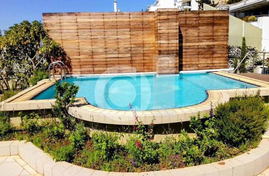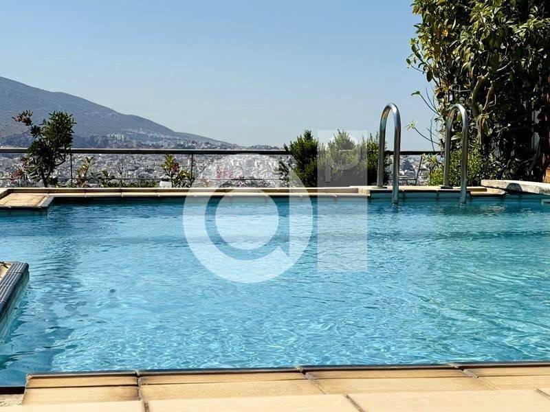 Lykavittos - Apartment 165sqm unfurnished, bedrooms 3, levels 2, penthouse, excellent condition, year built 2002, energy class D, living room, hall, kitchen, bathroom, wc, heating type: autonomous (natural gas), air condition, parking covered, quiet, dual aspect apartment, luminous, unobstructed view, frontage, painted, storage space, fireplace, balconies, large balconies, tents, elevator, garden, private terrace, terrace 100sqm, aluminum frames, double glazed windows, door screen, wood & marble floors, separate kitchen, three phase electricity, night electricity discount rate, secure door, alarm, video doorbell, luxurious, swimming pool, private pool, residential zone, access from asphalt.
