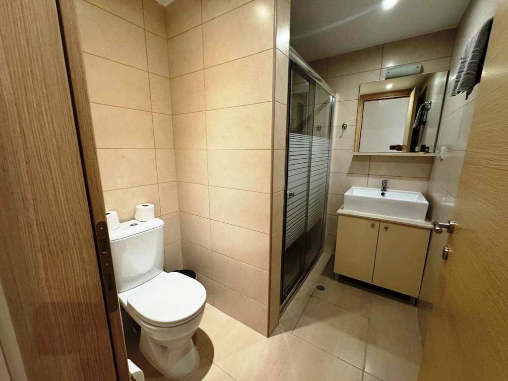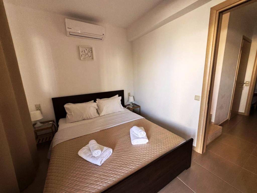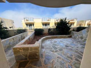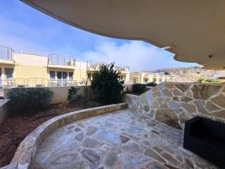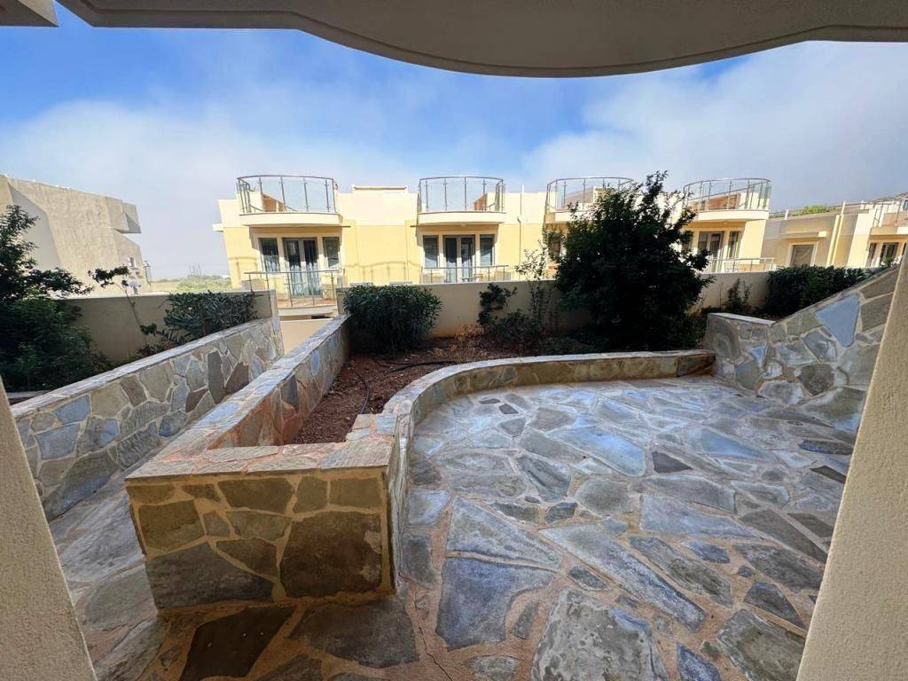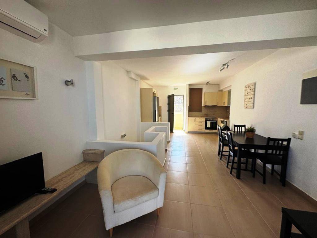 Lagada, Makry Gialos, South East Crete: Townhouse apartment just 300meters from the sea. The property is on two levels and in total is 75.90m2. The ground floor which is 40m2 consists of a master bedroom with an en-suite bathroom and a door with access to a private terrace at the poolside. There is also another second bedroom also with en-suite bathroom as well as a storage room. The upper floor which is 35.90m2 consists of an open fully equipped kitchen as well as living and dining area and a balcony with sea views. Lastly the property has access to the communal swimming pool and is located 3km from Makry Gialos and from all amenities.