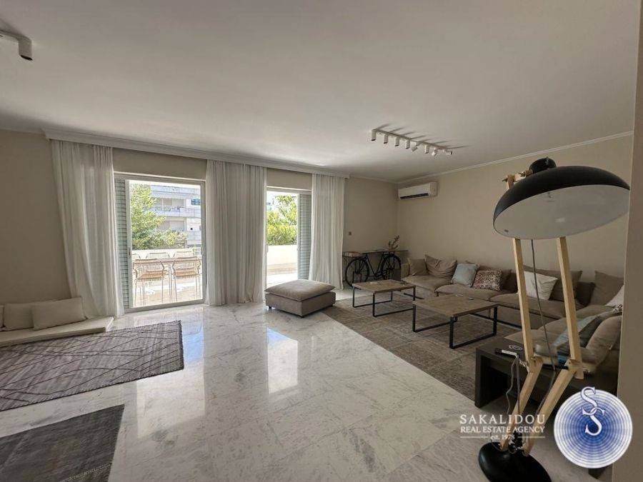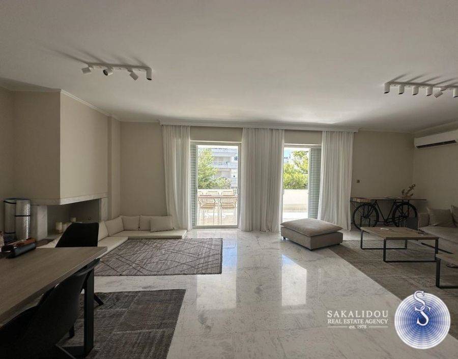 Glyfada – Located in the center and very close to the Golf course, this third-floor apartment offers comfort and elegance with a large veranda boasting a beautiful sea view. It consists of four bedrooms, one of which is a master with an en-suite bathroom, a modern open-plan fully equipped kitchen, and an additional bathroom. The apartment features autonomous natural gas heating, air conditioning, a solar water heater, and private parking. It is offered fully furnished, making it an ideal ready-to-move-in residence in one of the most sought-after areas of Athens' southern suburbs.