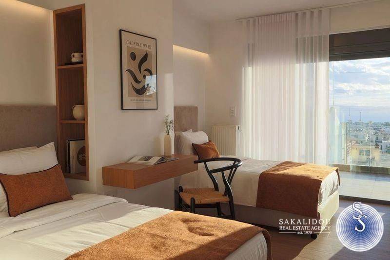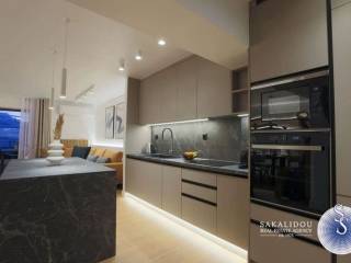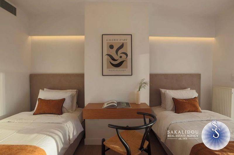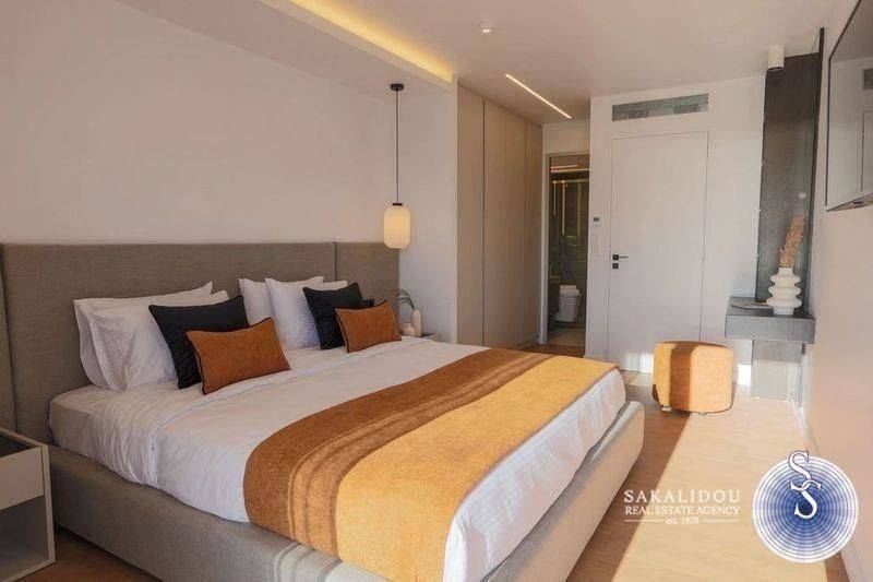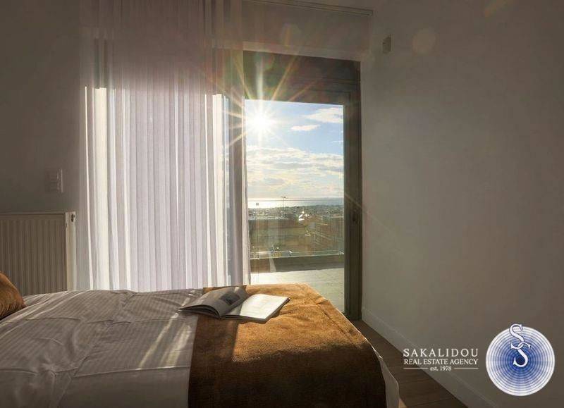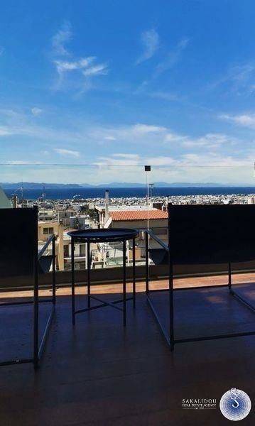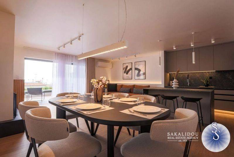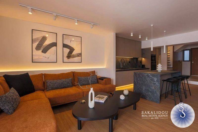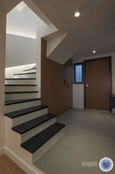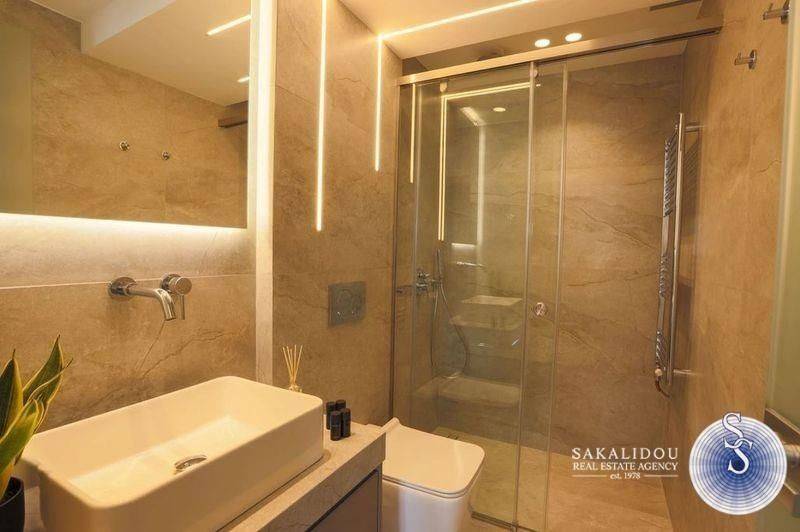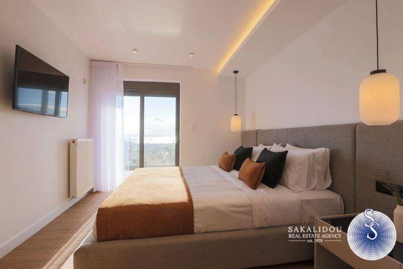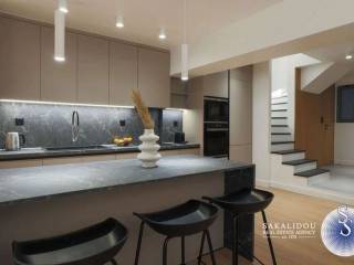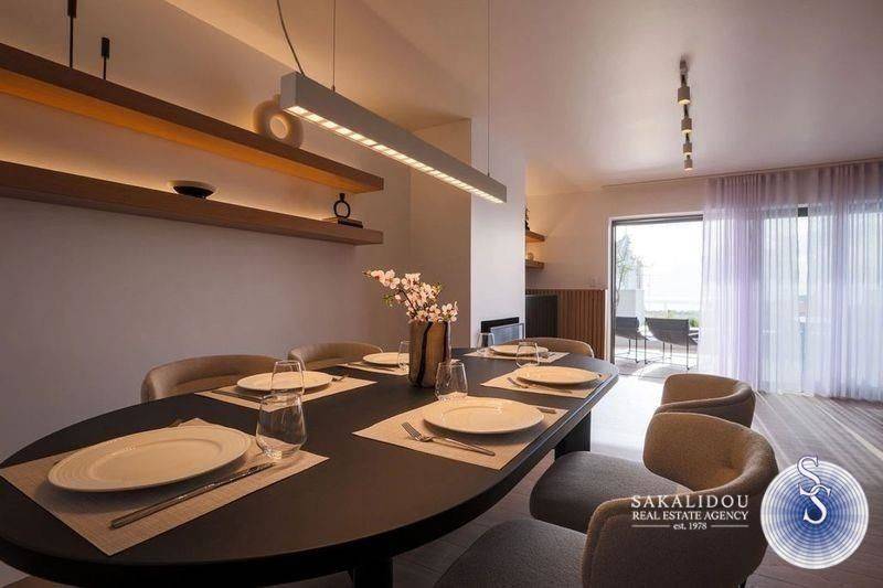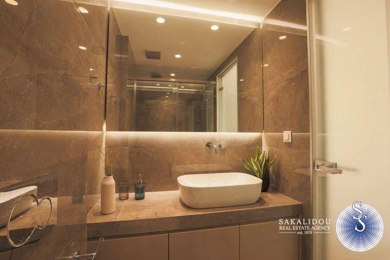 Glyfada, Pyrnari area, furnished maisonette for rent of 135 sq.m., Minimal Design, with unlimited sea view and unique horizon, completely and recently renovated, renovation 2023, ground floor, with private outdoor pool, 2 levels, with open horizon through the living room, built in 2012, frontage, bright property, has a comfortable living room area with a fireplace, parquet floors, 2 large Master bedrooms, 3 bathrooms, equipped kitchen with branded electrical appliances, luxurious property, Playroom, independent heating, oil-electricity, air conditioning, solar, elevator, security door, intercom, awnings, double glazing, screens, underground parking,, alarm, storage, Internet, terraces, internal staircase,, nice environment, only furnished for an annual contract or season at another price.