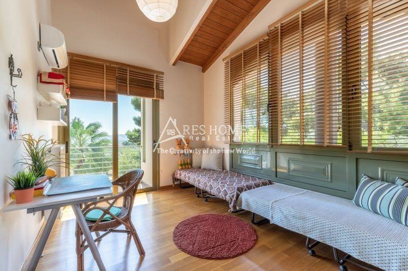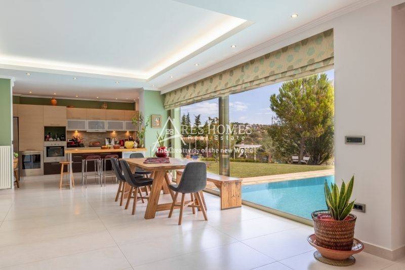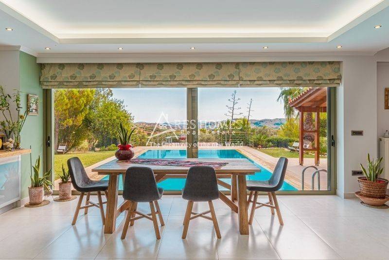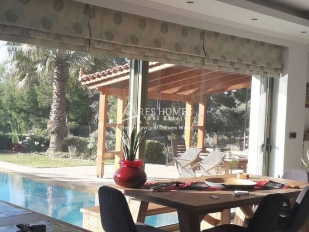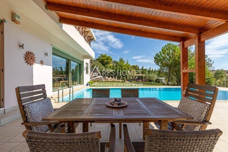 Property Code: 1-1444 - Villa FOR SALE in Kouvaras Neos Kouvaras for € 800.000 . This 375.00 sq. m. furnished Villa consists of 3 levels and features 4 Bedrooms, an open-plan kitchen/living room, 3 bathrooms and a WC. The property also boasts Heating system: Autonomous heating - Oil, tiled and wood floors, view of the Mountain, Window frames: Aluminium, Armourplated door, a storage unit sqm, garden, fireplace, jacuzzi, swimming pool, A/C, alarm system, awnings, insect screens, double-glazed windows, solar-powered water heater, BBQ, dressing room. The building was constructed in 2005 Plot area: 5500 s.q. . Building Energy Rating: A