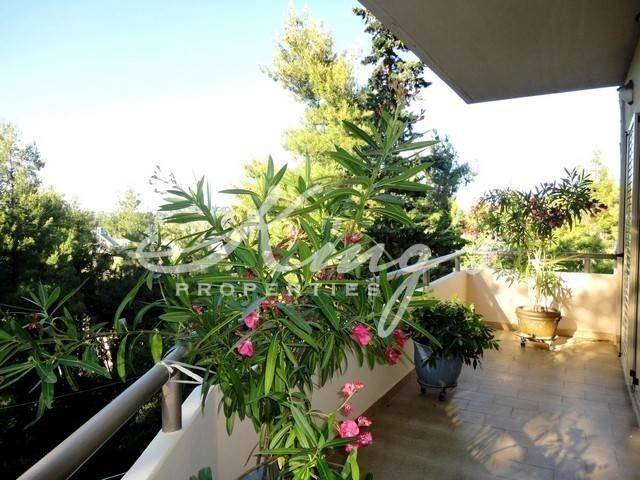 DIONYSOS, for sale, apartment 147sqm, 1st floor, in a two-storey house, in excellent condition, very good orientation, reception area, spacious living room with fireplace, dining room, tiles flooring, separate bright kitchen with daily seating area, 2 master bedrooms with bathrooms with bathtub, open office space or 3rd bedroom, wc, wardrobe, autonomous heating, solar water heater, security door, alarm system, night current, double glazed windows, terraces overlooking green environment, 2 parking spaces, large landscaped communal garden, KING`S PROPERTIES - www.kingsproperties.gr - tel: +30210 8014300