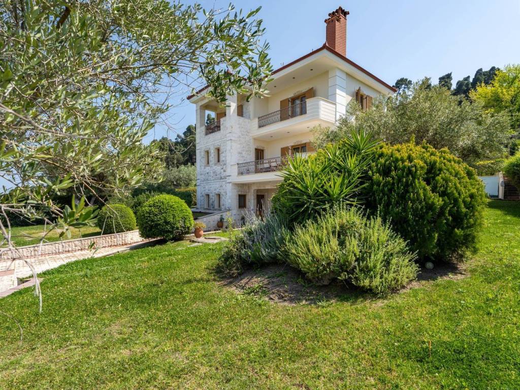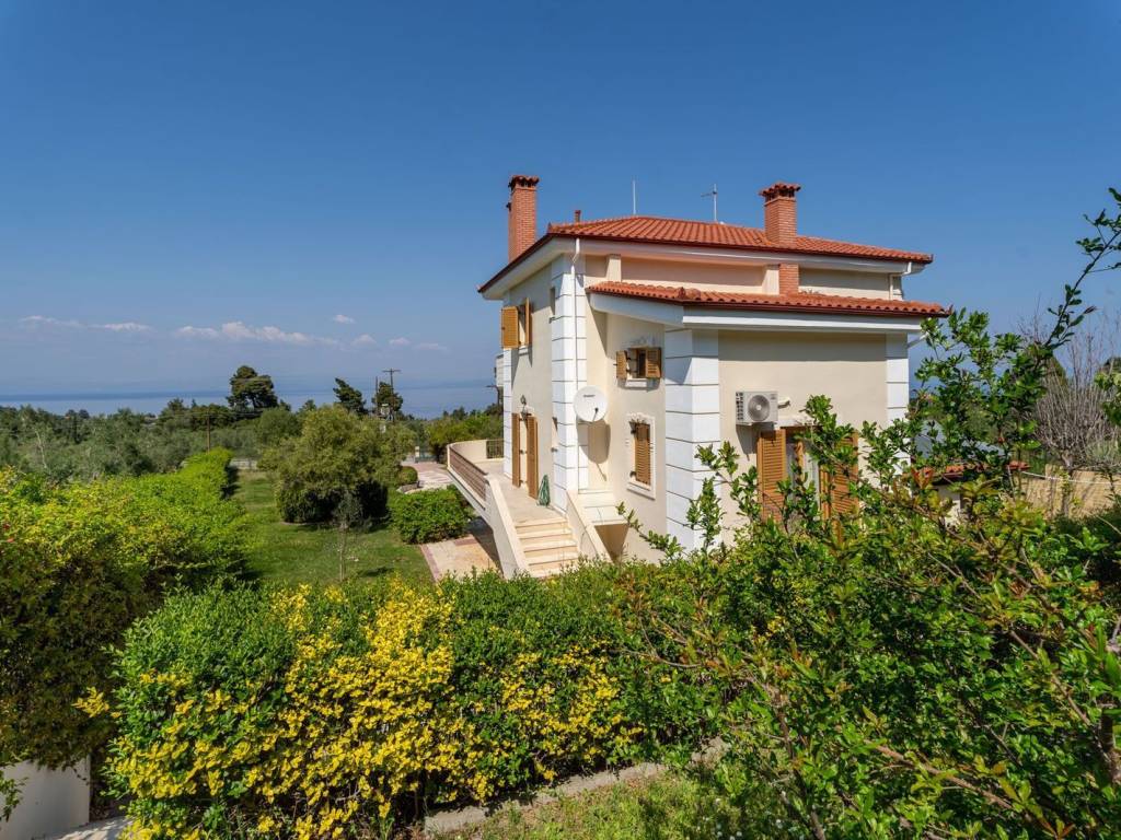 Discover a charming villa nestled in a serene natural setting, offering a perfect blend of comfort and luxury. With three levels, this property is ideal for both permanent residence and memorable getaways. Inside, you'll find five cozy bedrooms and two spacious living areas, perfect for relaxing with family and friends. The two fully-equipped kitchens are ready for culinary adventures, and the crackling fireplace adds warmth to cozy evenings. Outside, the sprawling garden invites leisurely strolls and outdoor dining. Enjoy BBQs under the open sky and soak in the breathtaking views of the surrounding beauty. Whether you're seeking a permanent home or a vacation retreat, this villa offers comfort, elegance, and natural charm. Schedule a viewing today and experience the tranquility and beauty this property has to offer. The Energy Performance Certificate is currently being issued. The buyer of this property is eligible for the Greek Golden Visa Program. Kassandra is the westernmost peninsula of the Halkidiki trident, close to the Metropolitan Center of Thessaloniki. Unique Features: Kassandra provides its guests with everything they need for an unforgettable vacation. Beaches that satisfy your most demanding expectations, forests that beg to be explored, archaeological sites that take you on a journey to a majestic past and local products of high culinary value. Accessibility: Kassandra is located at a distance of 80 km from the International Airport of Thessaloniki, with which it is connected via the national highway Thessaloniki - Halkidiki. Investment Opportunity: The area of ​​Kassandra, due to its unique tourist character and the short distance from Thessaloniki International Airport, has been a top choice for real estate investments in recent years, both in the hospitality and residential sectors, attracting significant investments from Central Europe, the Middle East and the wider Balkan area.