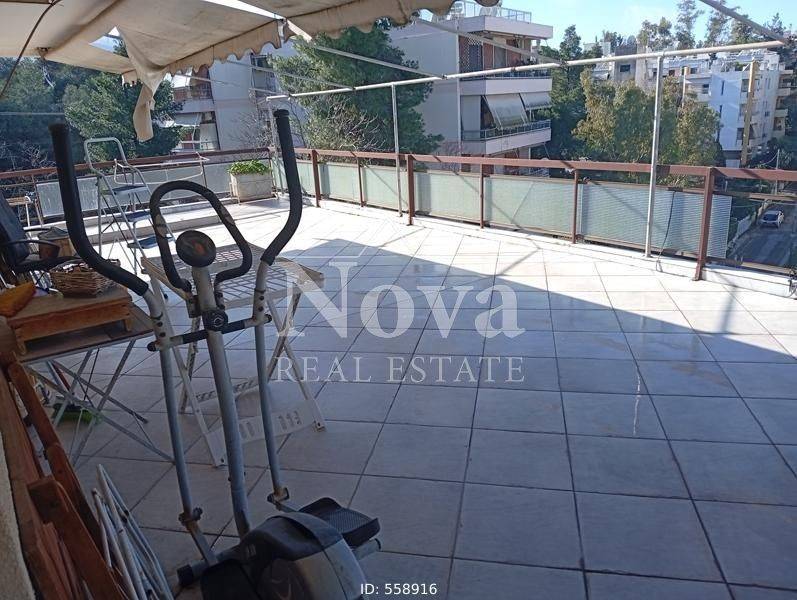 Holargos, Ano Cholargos - Apartment 115sqm bedrooms 3, 4th, penthouse, good condition, year built 1979, energy class G, living room, hall, kitchen, bathroom, wc, heating type: central (oil), quiet, exposure, luminous, in corner, mountain view, fire place, balconies, large balconies, tents, elevator, storage space in house, aluminum frames, double glaze windows, door screen, wood & mosaic floors, separate kitchen, secure door, video doorbell, satellite, internet, pets allowed, close to hospital (up to 3000m), close to park (up to 500m), close to super market (up to 200m), close to market (up to 500m), close to bus stop (up to 100m), close to sports facilities (up to 500m), close to mountain (up to 100m).