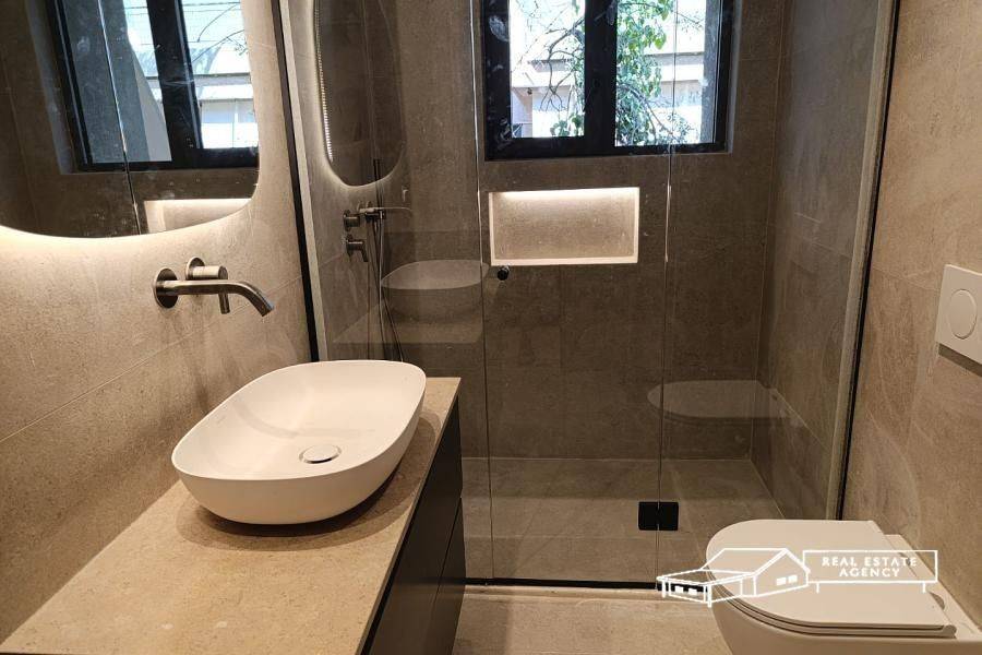 Varkiza, next to Zisimopoulou Square and just 5 minutes from the center and the sea, a fully and luxuriously renovated, 78 sq m corner apartment at the 2nd floor corner is available for sale. It consists of a spacious living room with open-plan kitchen and access to a wide, corner veranda, 2 bedrooms with big closets and balcony and a bathroom. It has aluminum frames with double glazing and electric shutters, heating with heat pump, 3 air conditioners, solar water heater, awnings, alarm and security door. Its location is very good, in a quiet neighborhood. The location of the map is indicative. Contact phone: +30 6932 746491, website: www.merryland.com.gr, Email: sotiropoulou@merryland.com.gr, Id: 16501
