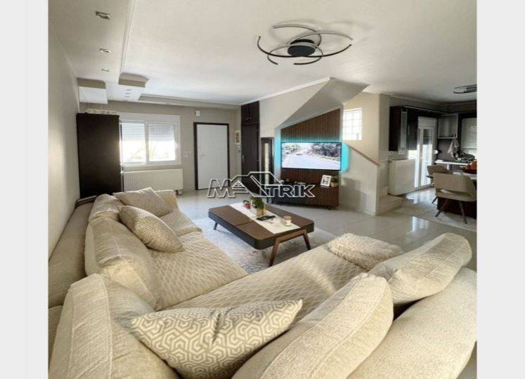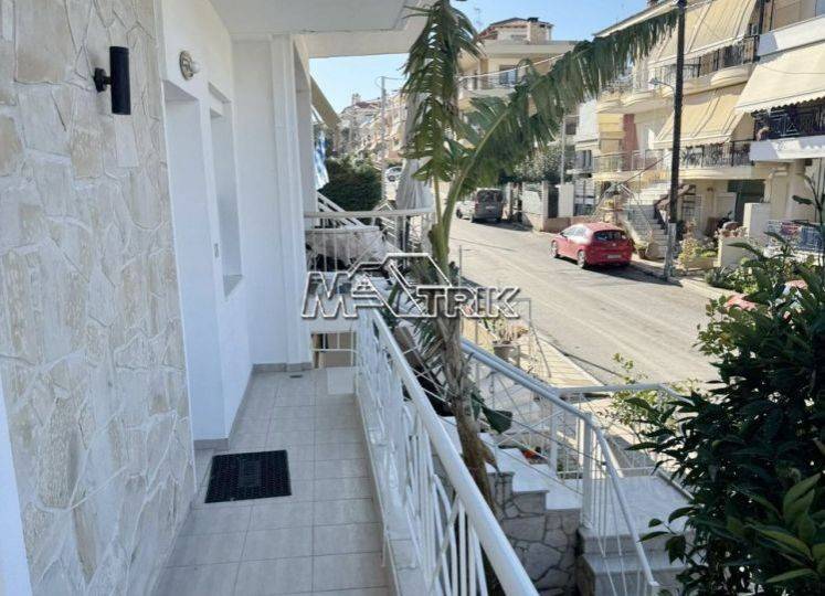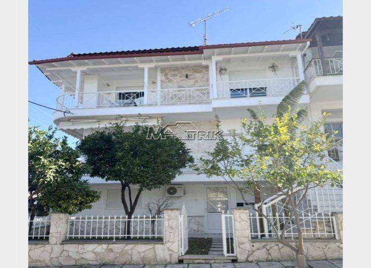 Chalkidiki, Nea Moudania, recently renovated three-level maisonette 165sqm very close to the sea and the local market. It consists of an independent ground floor apartment of 55sqm and a maisonette of 110sqm. The ground floor apartment consists of one bedroom, kitchen-living room and one bathroom and the maisonette consists of three bedrooms, kitchen-living room, one bathroom and one wc. It has aluminum sliding and recoiling window frames, with double glazing and nets, tiled floor, armorized door, oil heating system, fireplace, four a/c, solar heater, awnings on the balconies, as well as a wooden pergola, storage room, two parking spaces for exclusive use, exclusive yard of approximately 30 sqm. It is also fully furnished and equipped with all electrical appliances. It is corner and extremely bright, it has been covered with thermal façade, it is located very close to the local market and its distance from the beach of Nea Moudania is 450m.