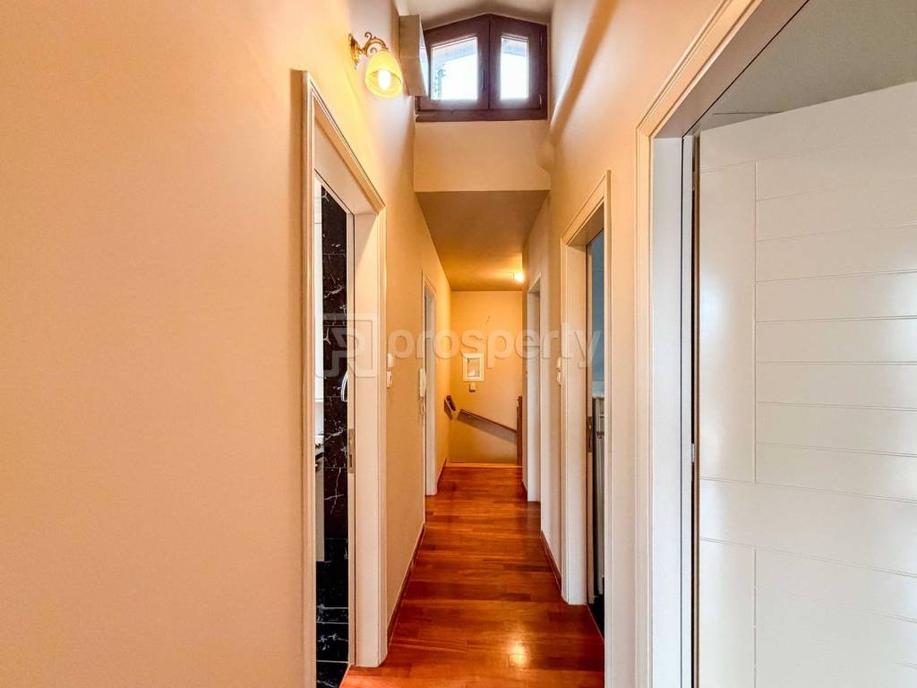 The property is located within an organized residential complex in Vari and consists of a 215 sq.m. maisonette, constructed in 2006, arranged over a semi-basement, an elevated ground floor, and a first floor. The first floor accommodates three spacious bedrooms, two bathrooms, and access to a terrace. The elevated ground floor includes a large, separate kitchen and an open-plan living and dining area with a fireplace, featuring multiple openings that connect to the surrounding terraces. Wooden flooring is present throughout, and the residence was repainted in 2026. Technical features include autonomous oil heating, a triple-energy solar water heater, elevator access, and one enclosed underground parking space. The terraces are equipped with awnings, and the property is maintained in fully functional condition. The surrounding area is characterized by low noise levels and proximity to natural surroundings, making the residence suitable for families seeking a permanent home in a calm residential setting. ☎️ 210 6812500