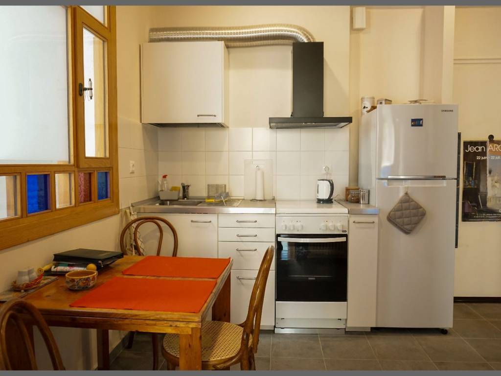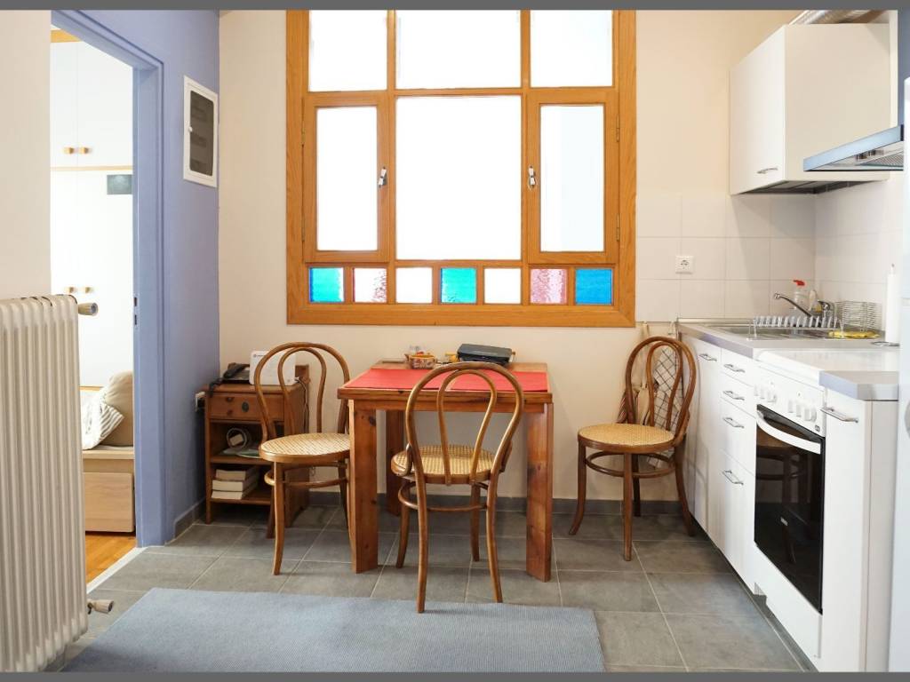 3rd floor apartment, furnished, fully equipped, with electrical equipment and kitchen utensils, even with linens. It consists of, a large open-plan reception area with an open plan kitchen, bright, with table and chairs, storage spaces, the bathroom, renovated, with a shower, also bright, since it is separated by glass blocks from the rest of the apartment. The bright bedroom, with a double bed, with a new mattress, with a built-in wardrobe, with access to the terrace. Right next to it, the living room or potentially, a second bedroom, with sofas, a desk, with access also to the same terrace. Both of these rooms are very bright, quiet, the terrace with awning in good condition, overlooking the green open space. There is an inverter air conditioner installed in the living room, a ceiling fan in the bedroom. The floor is oak in the two rooms, tile in the rest of the spaces. The heating is central oil, it works, since the apartment building is functional, well-kept, clean, since there communication among tenants is effective. The owner is approachable and helpful to the tenants. The area is quiet, safe, at 7 minutes distance from "Ag. Nikolaos" train station, as well as from other means of public transport. The entrance to the apartment building is located on a pedestrian street, with the an elementary school right across the street. This ensures a special care, in terms of cleanliness and good lighting of the area. There are also nearby, schools, supermarkets, a market, banks, etc. Other properties at www.mestate.gr