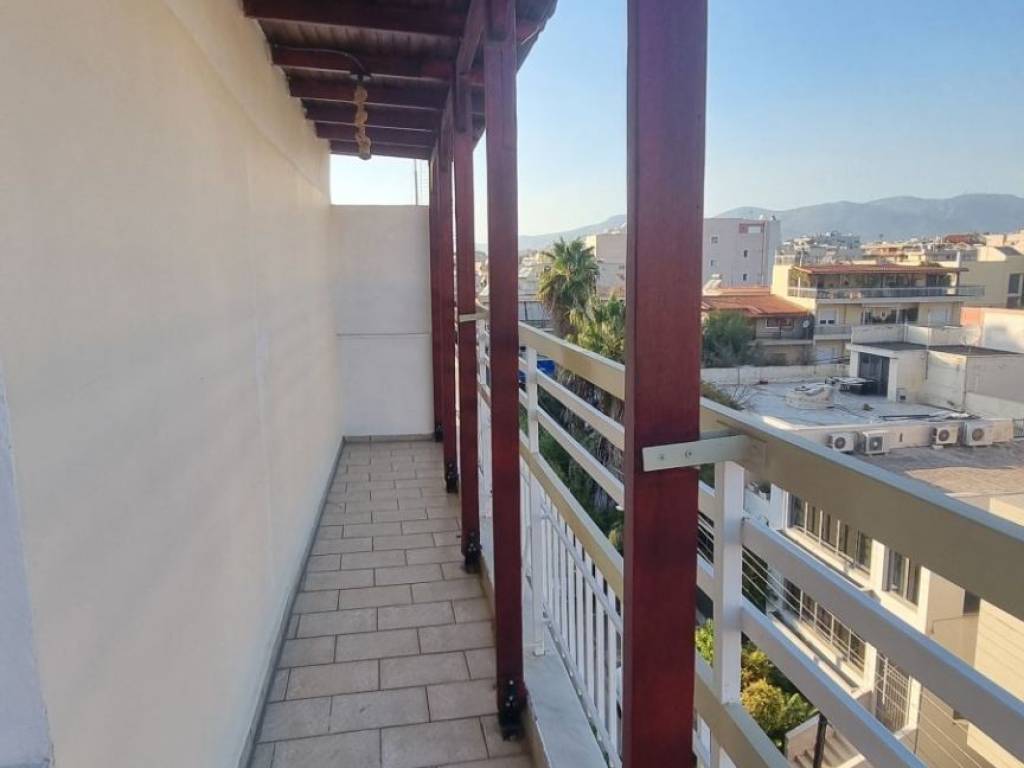 Athens - Western Suburbs, Nea Ionia: 56sq.m Apartment for sale. On the 4th floor, front, corner, with a large, comfortable wood ground terrace and BBQ. With unobstructed views from Parnitha and Penteli, to the Olympic Stadium and the hill of Filothei. With modern, comfortable and functional kitchen, living room, bedroom and another stand -alone room of about 12 sq.m. that can be used as an office, gym, foreign room or whatever you want. Heating/cooling with three modern ACs, solar water heater. With elevator, built in 1974 and features a shielded door, energy class B+.. Property Code: #1523420