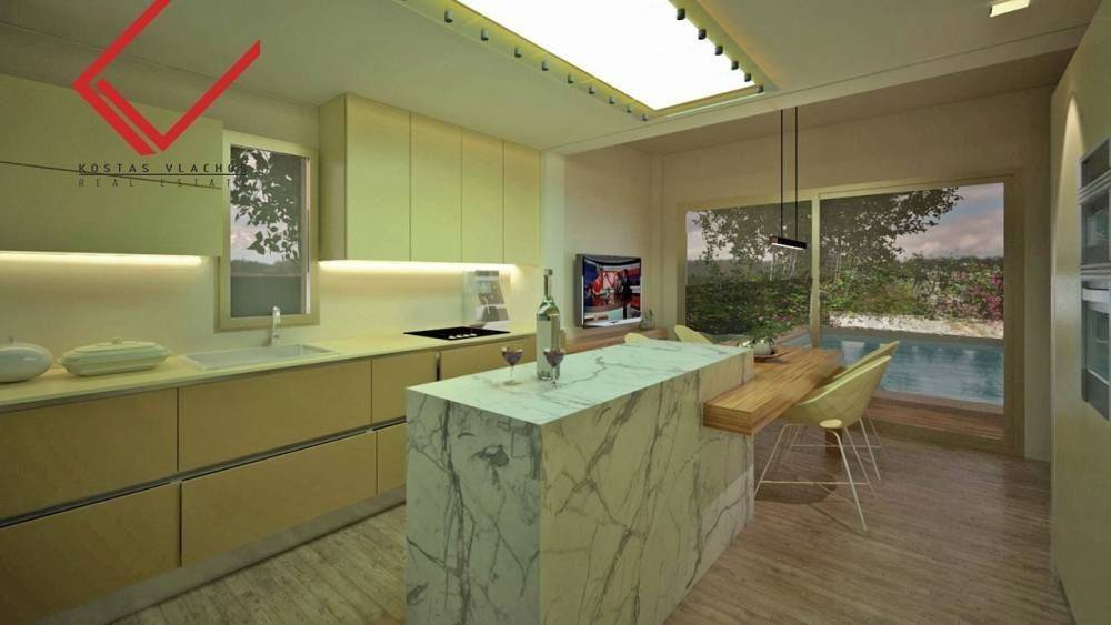 Detached home for sale in Lathouriza,For sale, an unfinished detached residence (80% completion) spanning four levels with a total surface of 400 sq.m., set on a plot of 420 sq.m. The property extends from the basement up to the 2nd floor and features a 30 sq.m. swimming pool within a 230 sq.m. garden.