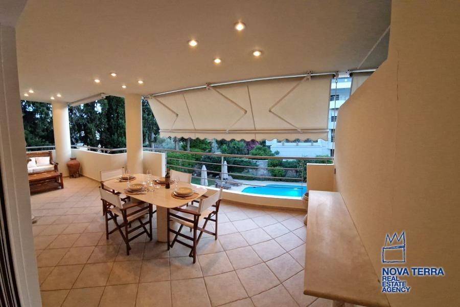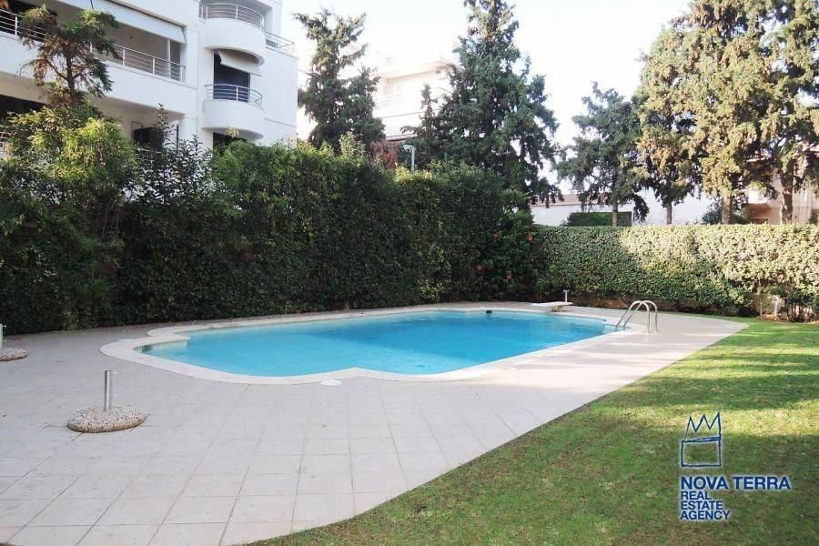 VOULA - PIGADAKIA, Duplex / Triplex Apartment,, Rental, 135 sq.m, on a plot of 800 sq.m, year built 2003, 3 rooms, Ground Floor, 1st, Various Characteristics: Balcony, Bath (2), Escalator, Fire Place, Furnished, Living room, Refurbished, Store Room, Swimming Pool, Toilet, Flooring: Wooden floor, Heating: Air Conditioning, Autonomous Heating-central systm, Access road, Aluminium panels, Bright, Electric Roller Windows, Facade, From Side to Side, Luxury, Minimal, Newly built, Painted, Satellite TV, Screens, Security Alarm, Security Door, Solar Heating, Tents, Weekend Residence, In perfect condition: : : Parking area: Garage, Parking, Energy class: B+. property ID: 43641, www.nova-terra.gr