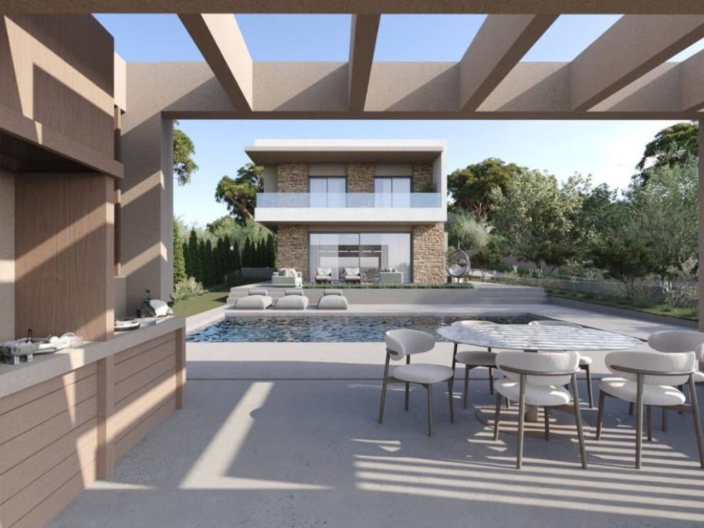 New, unique project comprising two newly built, identical high-specification villas, situated on a 4-acre plot in a prime location with open views in Pefkochori, Halkidiki. Each villa has a total area of 240 sq.m., developed over three levels, and includes five spacious bedrooms, three of which are located in the basement and two on the upper floor, offering comfort and privacy. The residence is accompanied by a private garden of approximately 1.5 acres, a private outdoor pool, a BBQ area, and an outdoor seating area, creating ideal conditions for relaxation and hospitality. The villas also feature a sauna and jacuzzi, security doors, a central entrance gate, and ample parking space. This is a top-quality construction of ultra-luxurious character, designed to meet the needs of both private use and investment, with the potential for rental to a demanding, high-level clientele. The project will be completed in the first quarter of 2027. Kassandra, the westernmost peninsula of Chalkidiki (First finger), is a terrestrial paradise that harmoniously combines rich nature with cosmopolitan life. Imagine lush slopes embracing golden sandy beaches and crystal-clear waters. The area offers a multitude of options for real estate buyers, from luxurious villas with sea views to picturesque traditional houses in quiet villages. Kassandra is renowned for its organized tourist infrastructure, with a plethora of restaurants, beach bars, and shops, while maintaining an authentic local character. By investing in property in Kassandra, you acquire not only a home but also a lifestyle. The vibrant real estate market and the increasing tourist influx make the area ideal for both a holiday home and an investment property with high returns. Whether you are looking for a quiet retreat or a dynamic investment, Kassandra offers you countless opportunities.