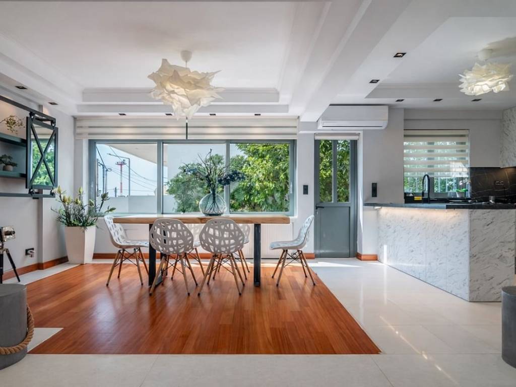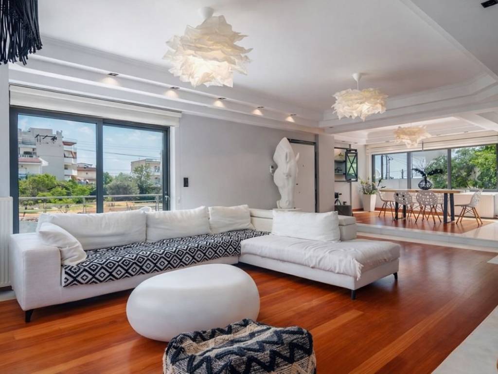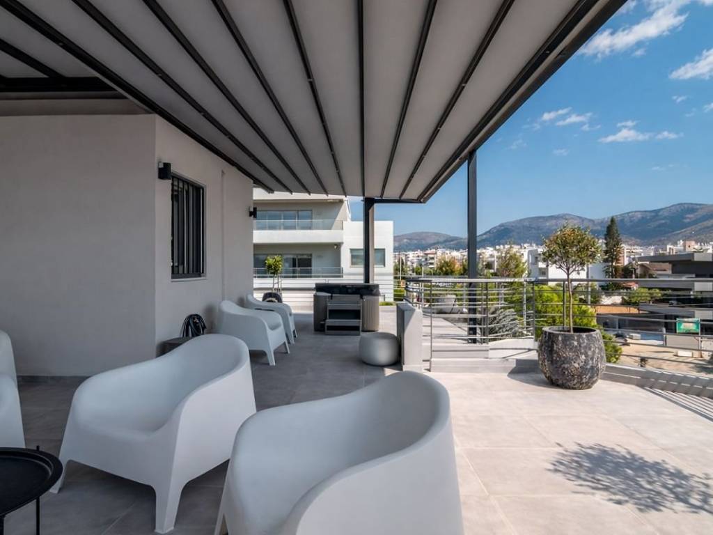 A modern and independent maisonette located in Glyfada, built in 2004. This 246 sq.m. property is situated in Glyfada, just a short distance from Ellinikon. It is laid out over 4 levels and features an outdoor swimming pool on the ground floor and a jacuzzi on the terrace. The ground floor consists of a living room, a kitchen, and a WC. On the lower level, there is another sitting area, a kitchen, 1 bedroom, and 1 bathroom. The 1st floor offers 3 bedrooms with 3 bathrooms, while the 2nd floor is designed as a loft. The property is constructed with luxurious materials, has a modern character, and offers a small garden with a swimming pool on the ground floor, as well as a large balcony with a jacuzzi on the 2nd floor. An attractive property in the highly sought-after area of Glyfada.