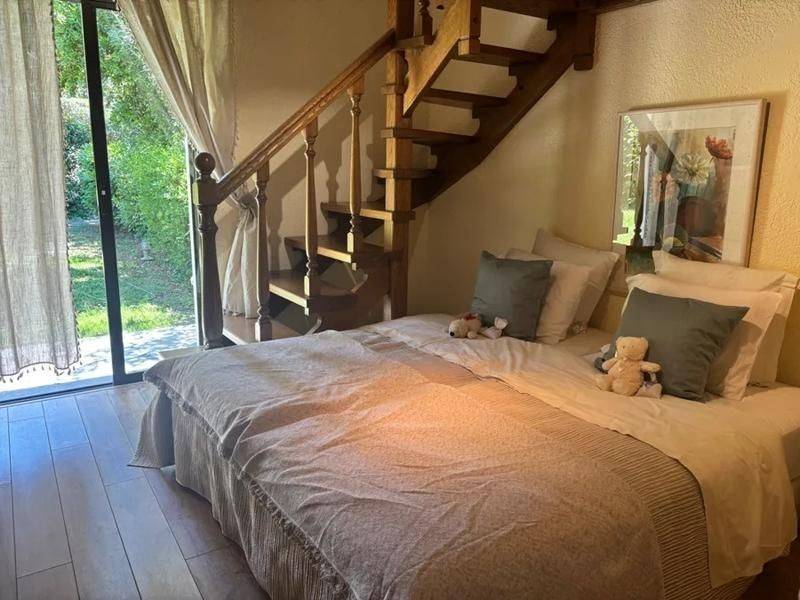 For sale tasteful maisonette 60 sq.m. in Sani Chalkidiki, inside the green settlement Stavronikita, in one of the most quiet and idyllic spots of the area. The residence combines the authentic natural beauty with the comfort and finesse of a well-kept country house. It develops on two levels and has two bedrooms and one bathroom. On the ground floor are located the fully equipped kitchen, dining area and living room with fireplace and corner sofa-bed, with large windows that open towards the green garden. The second bedroom is on the ground floor, while the main bedroom is a romantic loft with separate atmosphere. The external space includes garden, yard with natural stone, built BBQ and pergola that shades the outdoor dining area. There is also private parking space, while the settlement offers large communal swimming pool and children's pool. The nearest beach, Koutsoupia, is only 900 meters away, while at 1 km are located the organized beaches of Sani Beach Resort. A unique property inside nature, with absolute privacy and sense of tranquility, ideal for holiday or tourist use. Selling price: 330,000€