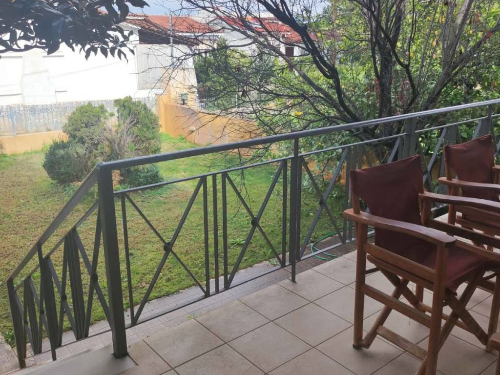 Η μεζονέτα βρίσκεται σε ήσυχη γειτονιά εντός σχεδίου, 150 μέτρα από την παραλία. Περιβάλλεται από κήπο με γκαζόν και δέντρα, Το ημιυπόγειο είναι 80 τετ. μέτρα και είναι υπό κατασκευή. Διαθέτει σαλόνι, κουζίνα, 2 κρεβατοκάμαρες και ένα μπάνιο.