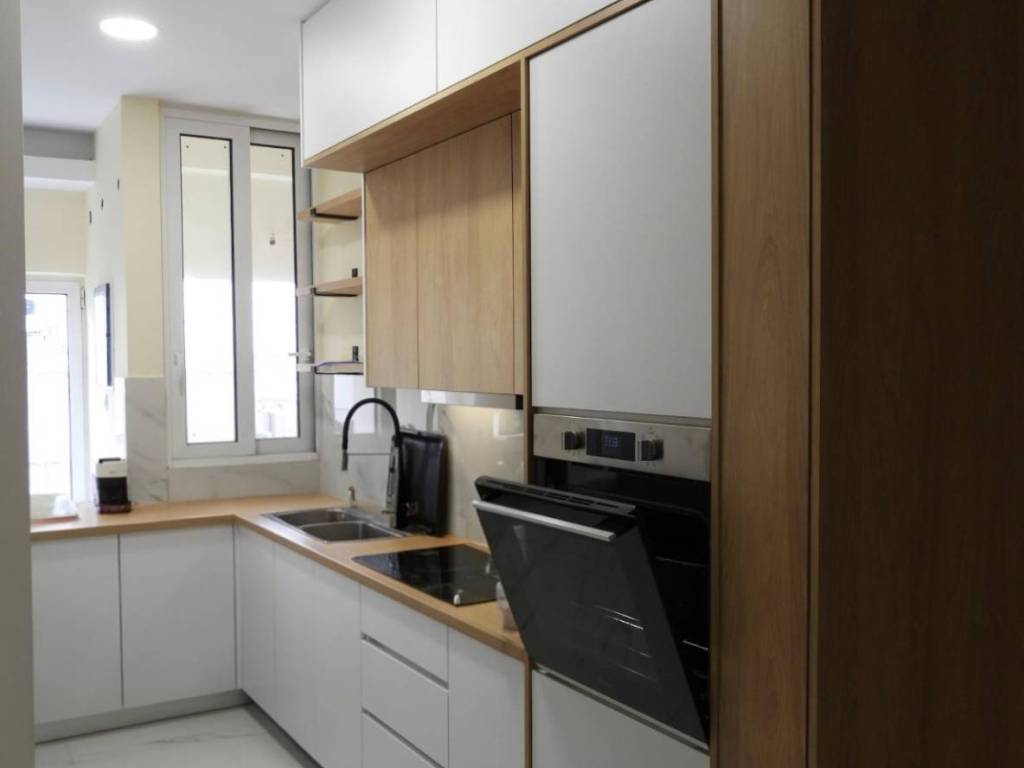 Available for rent: a stunning, fully renovated, and professionally furnished 90sq.m. apartment located at Kyprou St., in the heart of Arkalochori. This high-end property is offered for its very first lease since renovation, combining modern luxury with top-tier security. ​Pricing & Utilities: The rental price is all-inclusive, covering full furnishing, high-end electrical appliances, and electricity bills (up to an agreed usage limit), providing a hassle-free living experience with no hidden costs. ​Key Features: ​Security: Equipped with a professional alarm system for your peace of mind. ​Remote Work Ready: Features 2 fully furnished office/workspaces, ideal for executives or professionals working from home. ​Living Area: Modern open-plan design with a comfortable corner sofa, hidden LED lighting, and premium finishes. ​Kitchen: Minimalist aesthetic, fully equipped with built-in appliances and ample storage. ​Bedrooms: Bright and airy, featuring large wardrobes and orthopedic mattresses for quality sleep. ​Bathroom: Contemporary luxury design with a walk-in shower and high-quality fixtures. ​Location Highlights: ​Situated on Kyprou Street, within walking distance of banks, supermarkets, and local amenities. ​Quick and easy access to the main road leading to the New Kastelli Airport and Heraklion.