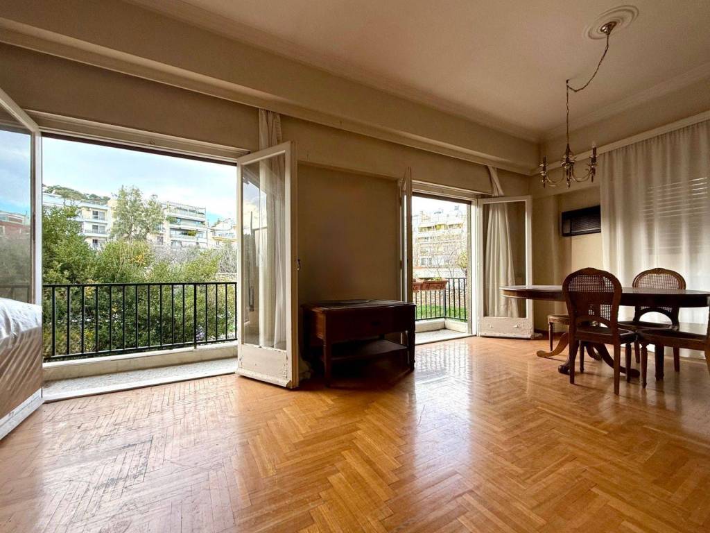This 75 m2 property is located next to Lycavettus Hill in Kolonaki, facing a nice parc and a large green area. In a 1967's building the flat is set on a high first floor in corner with many large windows ine the facade. The living room that enjoys the unobstructed view unfolds paralell to one long front balcony and on the other side the two bedrooms share the second balcony. The kitchen is looking to the back uncovered area, the bathroom standing next. A voluminous hall completes the lay-out. On the roof top terrasse a small 2 m2 storage space is attached to this property.. and an impressive perspective of the Lycavettus Hill. The property would need a renovation. It is very strategically located being only 5' walk to Mavili Square and 7' to metro Megaro Mousikis, while enjoying a rather peacefull immediate outlook and swift access to Lycavettus refreshing pathways.