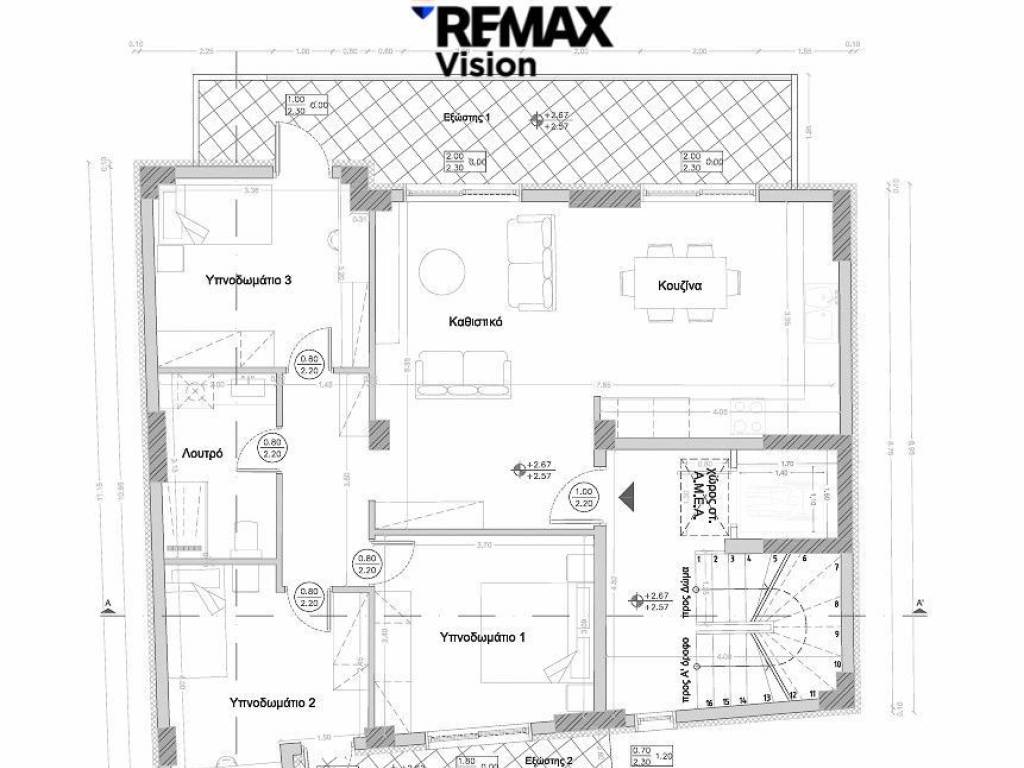 In the quiet area of Zarouchleika, a newly built first-floor apartment of exceptional aesthetics is offered for sale, with a total surface of 94 sq.m., constructed in 2025. This is a modern, high-specification property featuring thermal insulation façade (thermal facade system), ensuring superior insulation and outstanding energy efficiency, offering comfort and low operating costs all year round. The apartment consists of 3 spacious bedrooms, a bright and airy living room, a modern kitchen, and 1 bathroom. It also features a large 20 sq.m. veranda, a 15 sq.m. storage room, 1 parking space in the pilotis, and a private rooftop terrace with BBQ area. The property is dual-aspect, front-facing, and bright, with a north orientation and urban views. Heating is autonomous with a Fan Coil system, and the property also includes a solar water heater, aluminum frames with double energy-efficient glazing, tiled floors, and an A+ energy performance certificate. Additional features include an elevator and a security door. It is conveniently located close to public transportation, schools, a square, supermarkets, and the local market. A luxurious residence that combines modern design, construction quality, and functionality — ideal for families or for those seeking a high-standard investment opportunity. RE/MAX Vision Contact Phone: 6934790730, 2610622077 email: info@remax-vision.gr website: