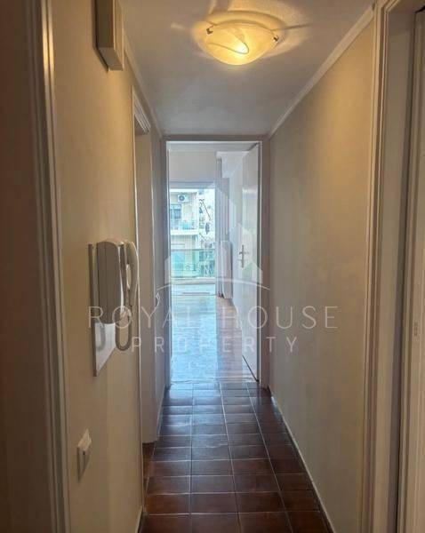 Nea Smyrni, Agios Sostis - Apartment 95sqm bedrooms 2, levels 1, 4th, renovated, year built 1980, energy class C, living room, kitchen, bathroom, wc, heating type: autonomous (natural gas), air condition, quiet, dual aspect apartment, luminous, frontage, painted, storage space, fireplace, balconies, tents, elevator, garden, aluminum frames, double glazed windows, ceramic tiles floors, secure door, pets allowed, residential zone, special offer.