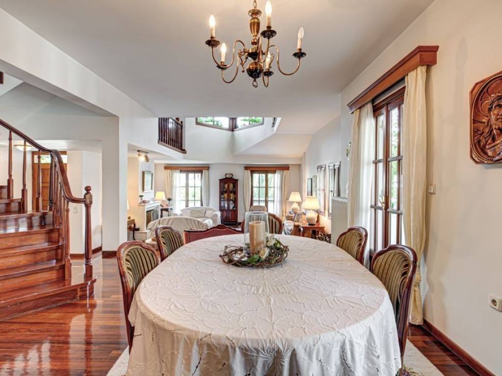 Occupying a prime position on a corner plot with views across the surrounding area, the mountain and the sea, this elegant residence unfolds across three levels and is complemented by a private garden that ensures both independence and privacy. The elevated ground-floor entrance opens into a refined reception area, leading to a generous open-plan living and dining space with a fireplace, perfectly suited for refined entertaining. The extensive use of wood in the flooring, window frames and internal staircase enhances the sense of warmth and timeless sophistication. The living area enjoys direct access to a spacious front balcony. To the rear of the dining area, an internal doorway leads to the guest W.C. and a large, well-appointed kitchen with a daily dining area and direct access to the garden. A covered outdoor space with a built-in barbecue creates an inviting setting for alfresco dining, relaxation and hosting. The first floor is accessed via the internal staircase and features a bright landing with a study and lounge area opening onto a front balcony, a master suite with en suite bathroom, and two additional bedrooms served by a shared bathroom. All bedrooms open onto private balconies. The semi-basement, with a total area of 125 sq.m., has its own independent access, either via the internal staircase or directly from the garden. It comprises a spacious playroom with natural light, one bedroom, a bathroom, storage space, and a parking area. The residence is equipped with oil-fired heating, an alarm system, pre-installation for an elevator serving all levels, and the option for an additional parking space within the garden. Set within a quiet residential neighborhood, adjacent to the local market and just 10 minutes from the vibrant commercial center of Glyfada, this rare detached home offers a refined blend of comfort, quality and security, making it an ideal choice for elegant family living. Location: Glyfada serves as the bustling commercial center of the Athens Riviera, maintaining a vibrant pace during the day and a lively nightlife that extends until dawn. It stands out as a fashion hub, boasting numerous branded boutiques and stylish shops. With its northeastern border being Mount Hymettus, the starting point of many hiking and cycling trails, the unique 18-hole golf course to the west, and the coastline to the south, Glyfada guarantees a varied array of experiences for people with diverse lifestyles. Unique features: A contemporary coastal destination with convenient access to multiple beach areas, cafes, restaurants, bars, and clubs catering all tastes and budgets. It hosts cinemas and outdoor theaters, sports clubs and fitness centers, indoor and outdoor swimming pools and large marina for private boat docking. In addition, the numerous public, private and international schools located in close proximity make the area an ideal place for families. Accessibility: Glyfada benefits from convenient transportation links to the center of Athens and the coastline via tram and buses. The nearest Metro Station is situated in Elliniko, only 4 km from Glyfada's center. Additionally, the extension of line 2 will incorporate a new station at Ano Glyfada, Vouliagmenis Avenue, and Glyfada, covering the entire municipality. It is a 30-minute drive from Piraeus port, offering quick access to the Greek islands, 12 km away from the Acropolis and Syntagma Square, and only 35 minutes from the International Airport. Investment potential: Glyfada has consistently drawn the interest of real estate investors and with the new development project in Elliniko, is poised to witness a significant upsurge in property values.