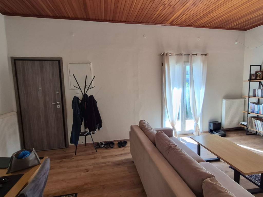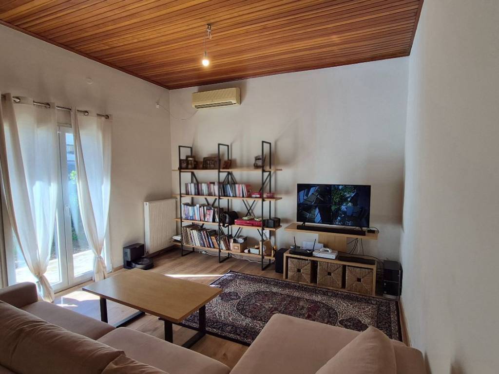 Marousi, Sismanoglio - Detached House 85sqm plot 200sqm, bedrooms 2, levels 1, ground floor, renovated, year built 1983, renovation year 2023, energy class B, living room, kitchen, bathroom, heating type: autonomous (natural gas), air condition, quiet, dual aspect apartment, luminous, grove view, frontage, internal plot, painted, solar heater, external thermal insulation, balconies, tents, loft storage, garden, aluminum frames, double glazed windows, door screen, laminate floors, secure door, alarm, surveillance cameras, video doorbell, pets allowed, residential zone.