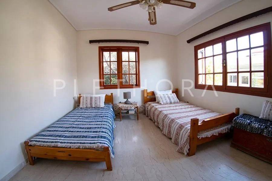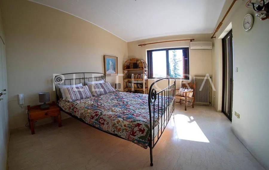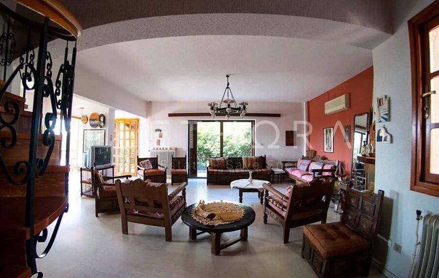 Saronida - Detached House 280sqm plot 1000sqm, fully furnished, bedrooms 5, levels 2, 1st - 2nd, very good condition, year built 1985, energy class F, living room, 2 kitchens, 4 bathrooms, wc, air condition, parking open space, dual aspect apartment, luminous, sea view, painted, fireplace, balconies, large balconies, garden, aluminum frames, marble floors, alarm, swimming pool, private pool, internal staircase, residential zone, east-western orientation, access from asphalt, close to market (up to 500m), close to sea (up to 500m).