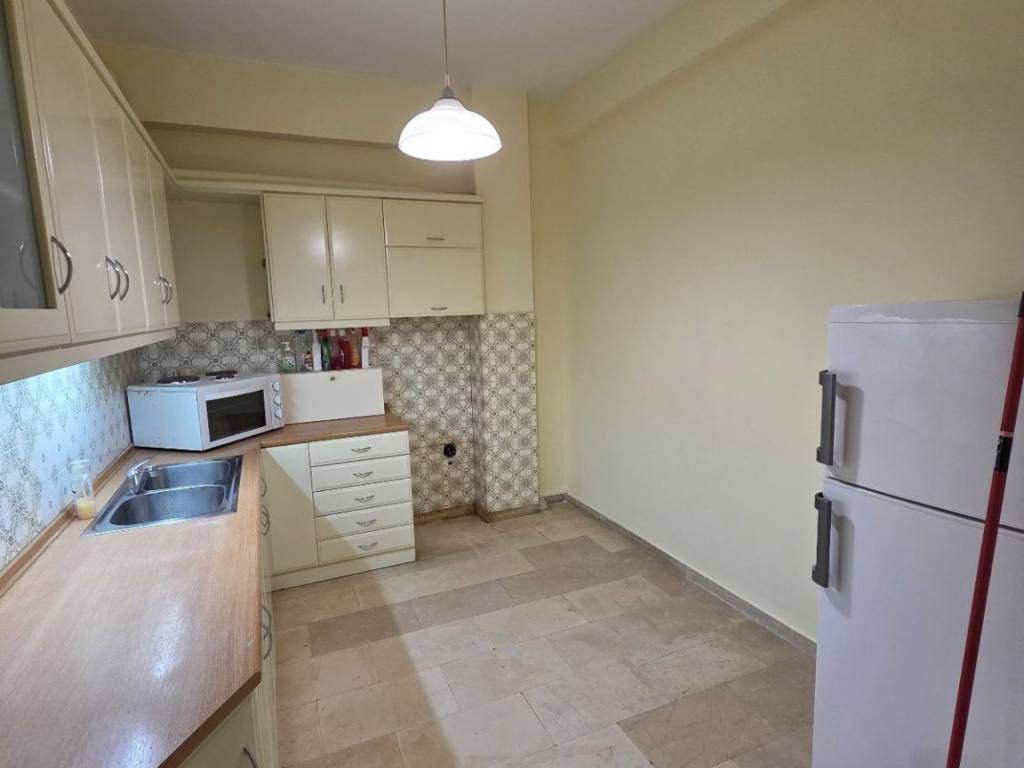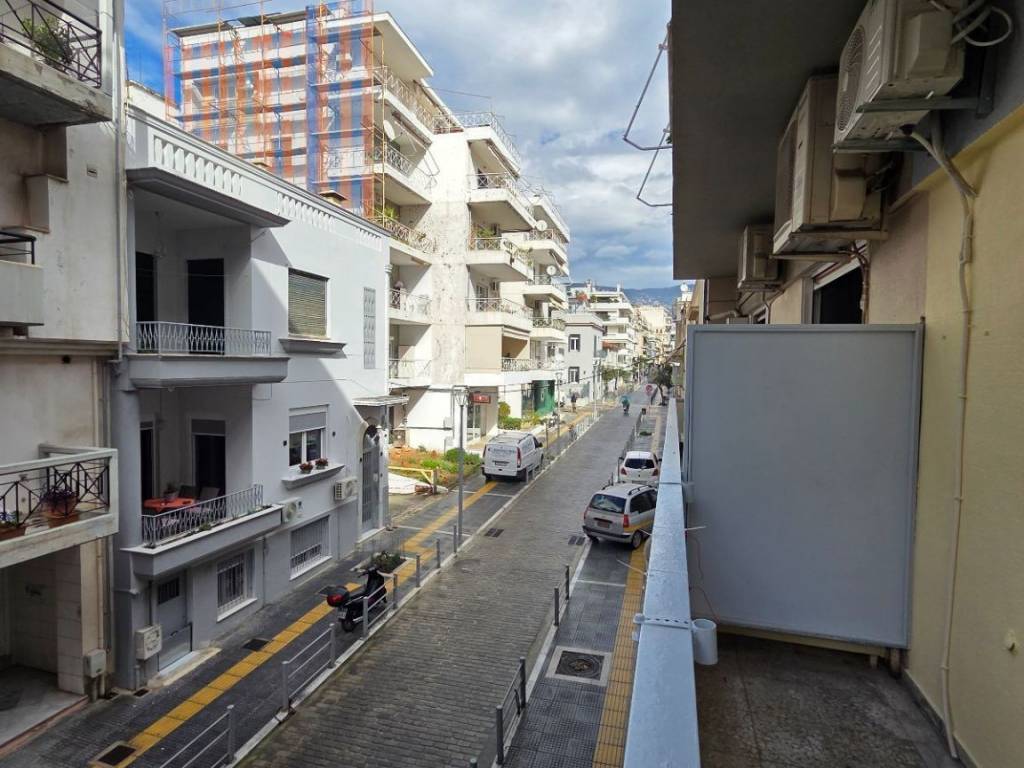 YOUTUBE VIDEO https://youtu.be/ltwdnlZufBk It is a luxurious apartment of 87sqm on the 1st floor, bright, overlooking Mavrokordatou, has a balcony of 8sqm in front and 3sqm in the back, contains 2 bedrooms, a kitchen, a large open space that is a living room - sitting room - dining room, bathroom. In the bedrooms and in the living room there is a wooden floor, the kitchen and hallway are marble, the bathroom is tiled. It has 3 air conditioners in the living room, in both bedrooms, a small washing machine, a gas burner, in the kitchen a medium-sized refrigerator, aluminum frames, double glazing. Shared utilities approximately 25€