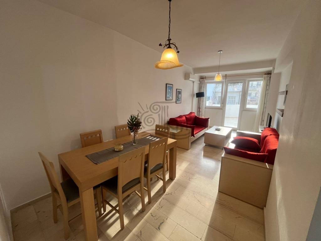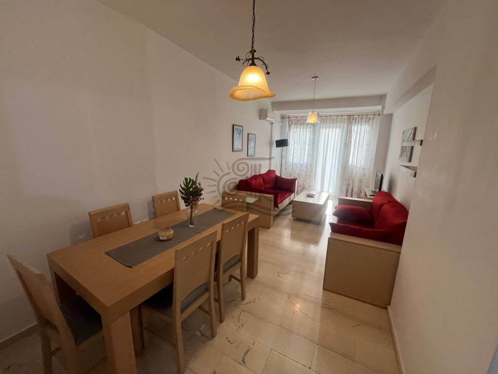 Heraklion, Agia Triada. For rent, a fully furnished first floor apartment of 90 sq m with a very beautiful design. Specifically, it offers an open plan space with a living room, dining room and fully equipped kitchen, two bedrooms with large wardrobes and a bathroom. In addition, it has autonomous heating with three air conditioners, a large storage room of 20 sq m, a washing machine and terrace furniture. Available from March 1.