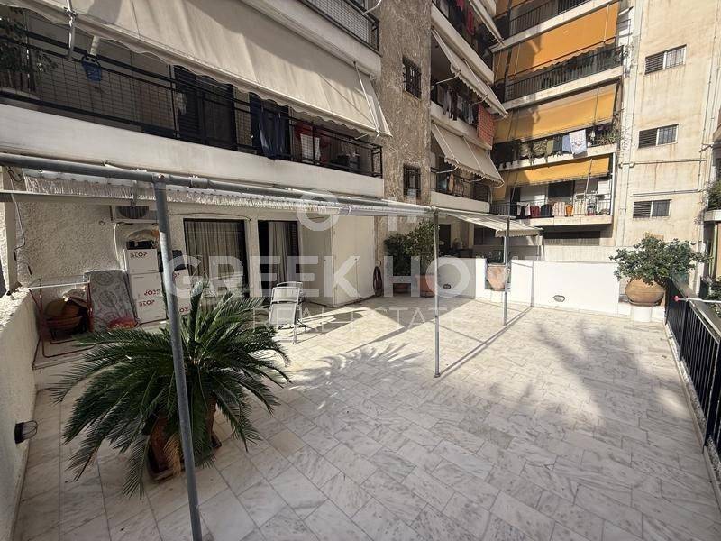 Kallithea (Attica - Southern Suburbs), Hrysaki - Apartment 93sqm unfurnished, bedrooms 2, 1st, excellent condition, year built 1990, energy class D, living room, hall, kitchen, bathroom, wc, heating type: individual unit (natural gas), air condition, parking covered, quiet, dual aspect apartment, luminous, frontage, painted, balconies, large balconies, balcony 55sqm, tents, elevator, loft storage, aluminum frames, double glazed windows, marble floors, separate kitchen, three phase electricity, night electricity discount rate, secure door, alarm, video doorbell, satellite, internet, pets allowed, east-western orientation, investment property, special offer, commercial use, close to market (up to 100m).
