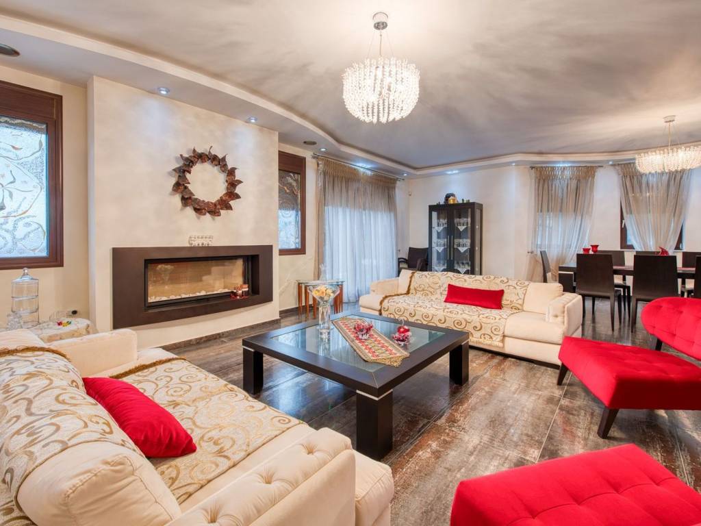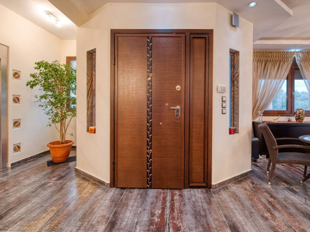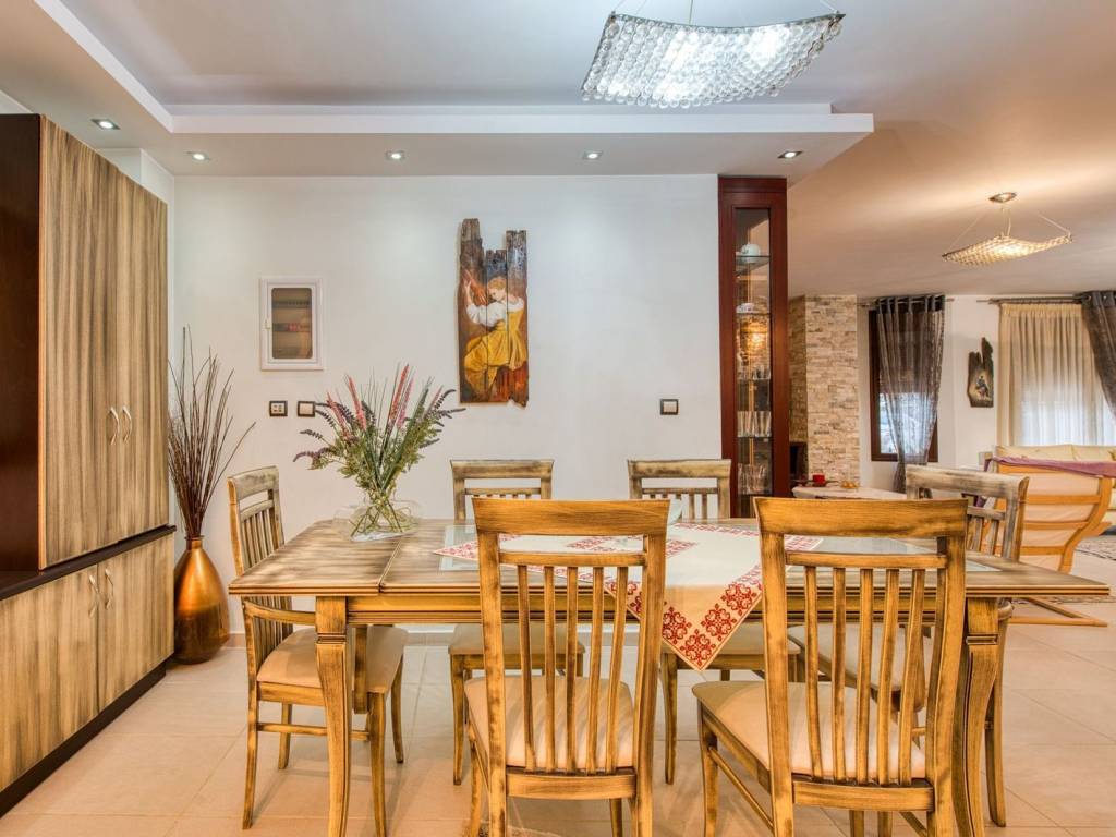 In one of the most tranquil and privileged locations of Drymos, an exceptional luxury detached house with a total area of 352 sq.m., situated on a plot of 800 sq.m., is presented, offering unlimited views and complete privacy. The residence is developed on three levels and has two independent entrances, offering flexibility of use and an ideal layout for both a large family and a dual high-standard residence. It includes 2 fully equipped kitchens, 2 elegant living rooms, 2 dining rooms, 3 spacious bedrooms, and 5 luxurious bathrooms. The large balconies are bathed in natural light and enjoy panoramic views, while the tasteful outdoor space with a courtyard, lush garden, gazebo, and BBQ creates an ideal environment for relaxation and private hospitality. There are 3 comfortable parking spaces available. The residence stands out for its high-quality construction and complete technological equipment: Private internal elevator Marble stairs & Inox railings Smart Home automations Multi-room audio system Video intercom & alarm system Autonomous underfloor heating Independent thermostats per floor Heating with natural gas & oil Advanced solar water heater Selected top-quality materials A rare property of high aesthetics, combining comfort, technology, and energy efficiency, aimed at discerning buyers seeking discreet luxury and quality of life. The Drymos is located near Thessaloniki, offering an ideal choice for prospective property buyers seeking a quiet, natural environment, in close proximity to the city. The area features a variety of properties, from traditional houses and single-family homes to modern residences, catering to the needs of every interested party. It is approximately 25 kilometers from the center of Thessaloniki, making it easily accessible via the Egnatia Odos and other local roads. The journey to the city takes about 30 minutes by car, allowing for easy commutes for work or leisure. Additionally, the area is well-served by public transportation, with regular bus routes connecting Drymos to Thessaloniki and other surrounding areas. It boasts a well-organized local community with all necessary infrastructures and amenities. Drymos is ideal for those who wish to live in a peaceful and friendly community, with direct access to nature. Residents enjoy a clean environment with fresh air and beautiful natural landscapes, ideal for hiking and cycling. The area is safe and offers a high quality of life, with a strong sense of community. For prospective property buyers, Drymos combines the tranquility of the countryside with the convenience of being close to the city. It is an excellent choice for families, professionals working in Thessaloniki, and all those seeking a quality life in a green and welcoming place.