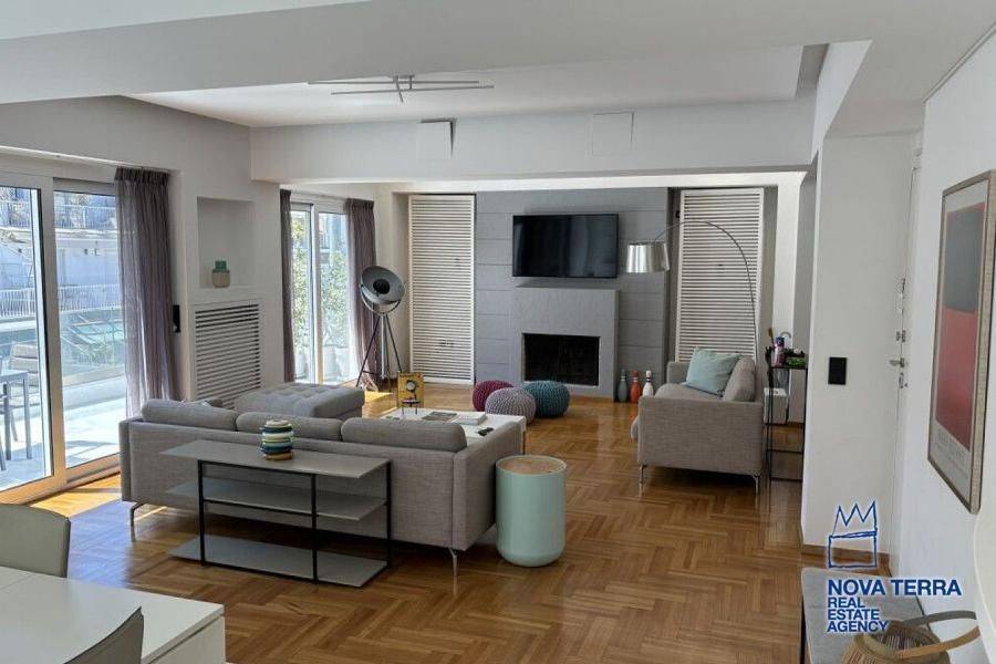 KOLONAKI - KENTRO, Apartment,, Sale, 135 sq.m, year built 1965, renovated in 2021, 1 rooms, 5th, View: Unobstracted view, Various Characteristics: Balcony, Bath (2), Escalator, Kitchen, Living room, Refurbished, Toilet (2), Heating: Air Conditioning, Autonomous Gas Heating, Autonomous Heating (auto-system), Access road, Aluminium panels, Bright, Double-glazing, From Side to Side, Luxury, Painted, Residential area, Security Door, Solar Heating, Tents, In perfect condition: Pets allowed: Parking area: Parking, Energy class: C. property ID: 52940, www.nova-terra.gr