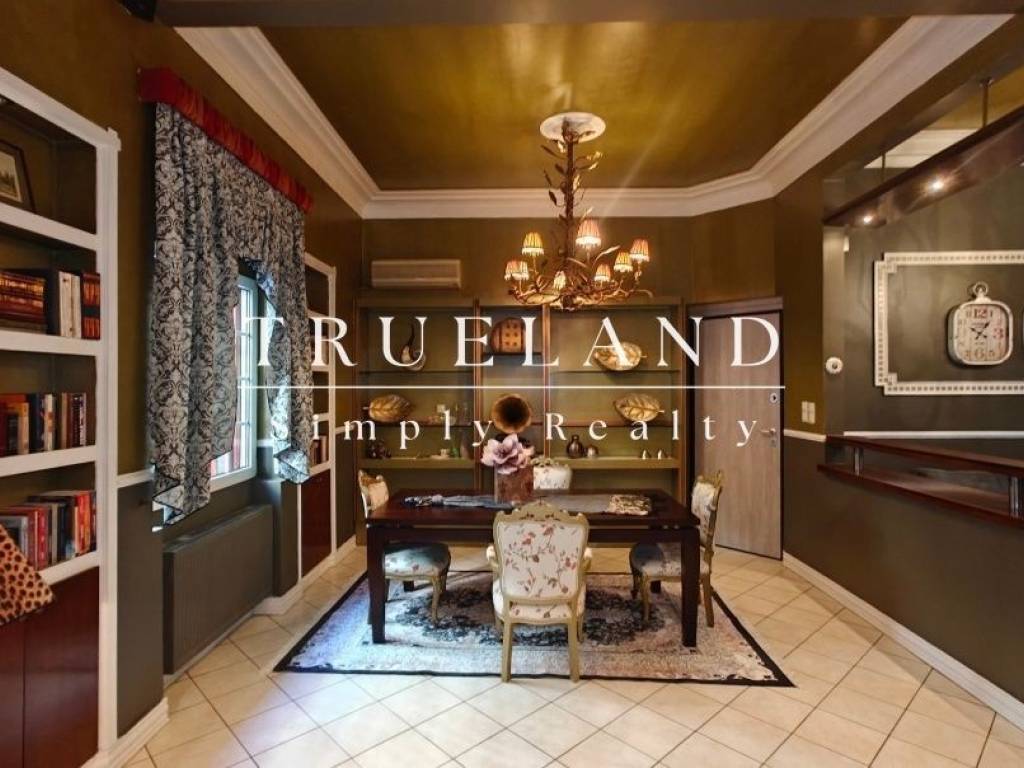 FOR SALE 105 sq m ground floor apartment in an aristocratic two-story house from 1952. This elevated, ground floor apartment impresses from the first moment with its imposing entrance, marble stairs and original wooden handrail. The features that stand out: Architectural Grandeur: High-ceilinged spaces (4 meters high) that offer a unique sense of freedom and light. Layout: Comfortable living room with fireplace, separate dining room, casual sitting area and a modern, fully equipped kitchen. Privacy: 3 spacious, high-ceilinged bedrooms and 2 luxurious bathrooms (one with hydromassage) with exterior windows to the building's courtyard. Total Renovation: Completely renewed plumbing and electrical installations, double-glazed windows, solar (2021) and brand new electric water heater (2025). Aesthetics: Plaster decorations, special two-tone styles and quality tile floors that highlight the character of the space. Additional Amenities: Autonomous oil heating (individual boiler - requires maintenance). Security door and basement storage. Possibility of purchasing with part of the furniture and electrical appliances (upon agreement). The 3-story house is located near America Square, a breath from transportation, the market and the intense cultural life of the area. The 1st floor of similar aesthetics was sold to an architect. Price: €168,000. TRUELAND REAL ESTATE IKE, Contact Phone: 2144080890, email: info@trueland.gr