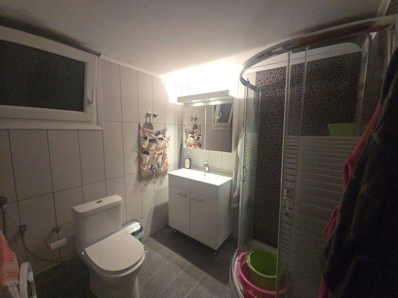 The apartment consists of an open-plan kitchen and living room with fireplace, 2 bedrooms, bathroom, wc, and a small storage room inside the house.