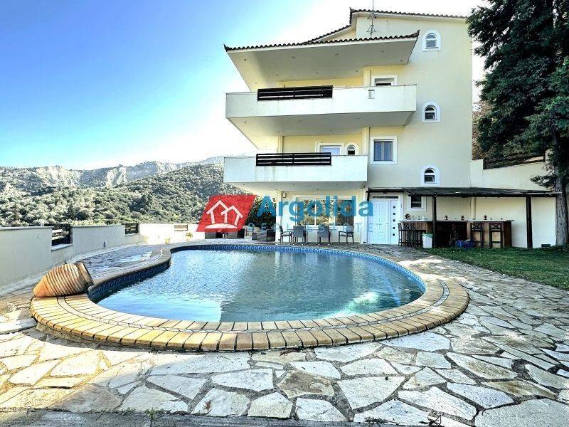 Surrounded by greenery and embraced by nature, the property offers a warm sense of serenity while remaining perfectly located: just 10 minutes from the beaches of Xylokastro, 30 minutes from Trikala and the Ziria Ski Center, and 1 hour & 20 minutes from Athens. It is an inviting retreat that beautifully combines natural surroundings with easy access to beloved destinations.  One of the villa’s greatest highlights is its enchanting outdoor space. A beautifully landscaped garden with manicured lawn, automatic irrigation, and mature vegetation creates a peaceful setting that feels both private and welcoming. At its heart, an elegant 60 sq.m. swimming pool invites you to relax while enjoying panoramic views of the green scenery all around. The property also includes ample parking space for at least five cars. The villa is ideal for Golden Visa, for holiday or serviced-apartment investment, and it also offers an additional 825 sq.m. of remaining building capacity for future development. Built in 2005 with reinforced structural specifications, the residence is spread across four levels, designed with comfort, quality, and a refined sense of style.