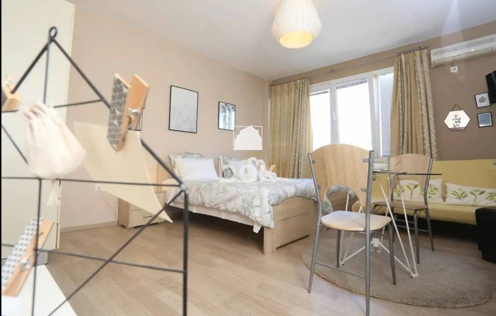 This property comes fully furnished including electronic devices (bed, wardrobe, living room table, kitchen table, sofa, hall furniture, washing machine, refrigerator, small oven) with wood flooring.