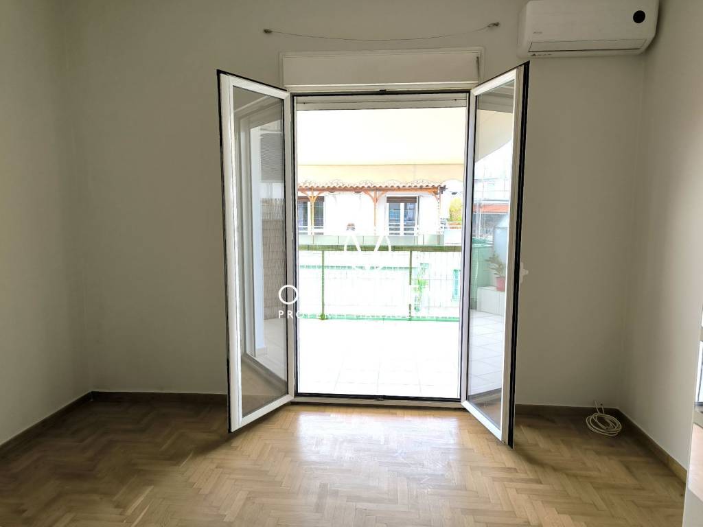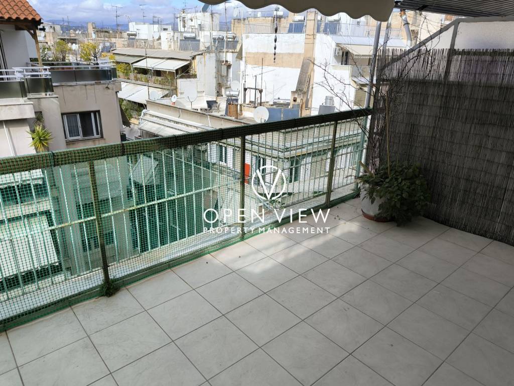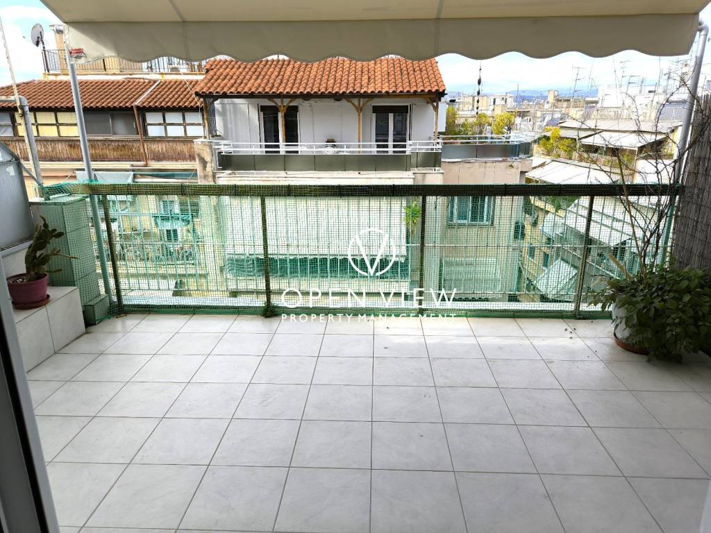 Excellent fifth floor penthouse of a total surface of fifty-five square meters, located in one of the most sought-after areas of Kypseli, just 250 meters from Agios Georgios Square. It consists of a hall, living room, bathroom, kitchen and two bedrooms, it has a ten square meter terrace on the facade, with an open view of the cityscape, as well as an additional balcony on its interior side. It is quite important to mention that the apartment, due to its existing layout, gives out the feeling of a much larger apartment. It has also been freshly painted, it has three new air conditioners, renovated wooden floors and mosaics, modern aluminum frames and awnings. It is located in a clean and organized building with a renovated elevator. An excellent apartment from Open View Property Management, available for lease.