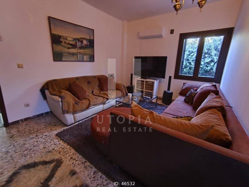 Koropi, Kitsi - Detached House 110sqm plot 350sqm, bedrooms 3, levels 1, ground floor, needs renovation, year built 1992, energy class E, living room, kitchen, bathroom, wc, heating type: autonomous (oil), air condition, parking covered, quiet, dual aspect apartment, luminous, unobstructed view view, storage space 38sqm, solar heater, boiler, balconies, large balconies, garden, private terrace, aluminum frames, double glazed windows, ceramic tiles floors, separate kitchen, pets allowed, residential zone, east-southern orientation, access from asphalt, price is negotiable.