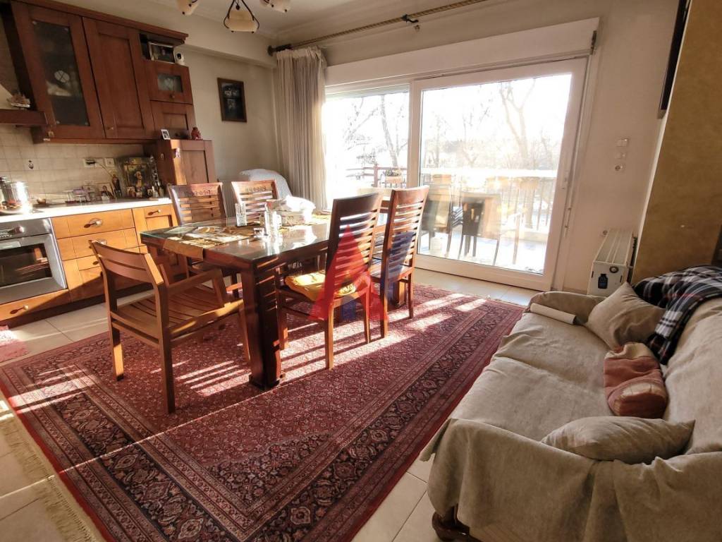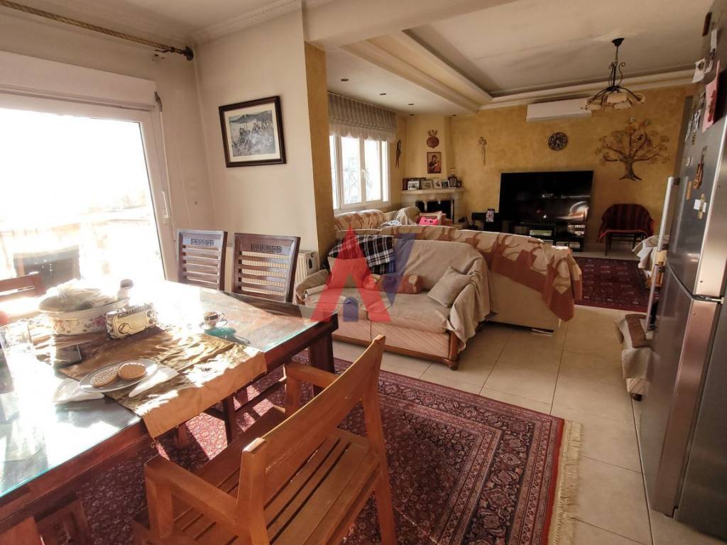Bright, airy apartment of 118 sq.m. on the 2nd floor for sale in Larissa, with south orientation and a view of a square. It features independent natural gas heating, aluminium frames, and a security door. It consists of a living-dining room with an open kitchen and fireplace, three bedrooms, one bathroom, one WC, and an internal storage room. The floors are covered with ceramic tiles in all areas, and there is also an internal storage room. The property is located in a residential zone, offering easy access to squares, schools, supermarkets, sports and entertainment facilities. Its energy class is B and it includes an indoor parking space. Property code: FGE02675