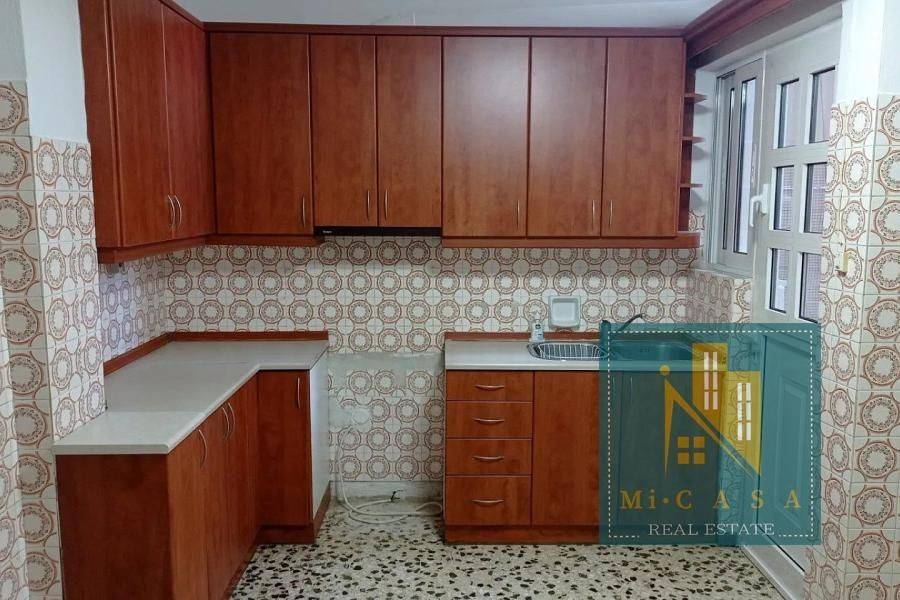 Peristeri, Apartment,, Rental, 75 sq.m, year built 1975, renovated in 2023, 2 rooms, Ground Floor, Availability: Available, Heating: Air-condition, Condition: Renovated, Floor type: Mosaic, Wood, Window frames: Aluminum, Energy class: E, Includes: Double glazing, Fly screens, Garden, Loft. property ID: 1973