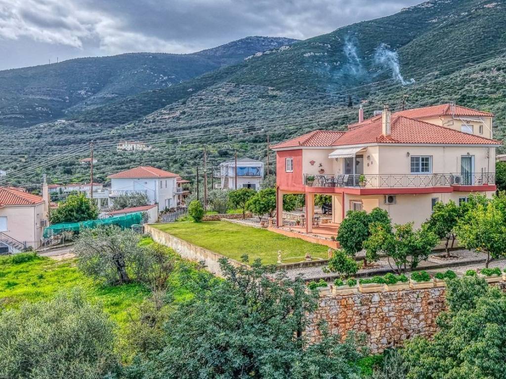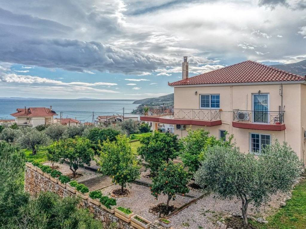 In a prime seaside location in Xiropigado, Northern Kynouria, a two-story villa of 212 sq.m. is for sale on a 390 sq.m. plot, just 250 meters from the beach, with unobstructed panoramic views of the Argolic Gulf. The main house covers 143 sq.m., while an additional 69 sq.m. include a garage and storage rooms that can be converted into a guest suite or home office. The ground floor features two bedrooms, a bathroom, a garage, and a storage room with direct access to the garden.The first floor offers two bedrooms, a bathroom, and an open-plan living, dining, and kitchen area with a fireplace and spacious terraces overlooking the sea and mountains. Built in 2005, the villa boasts aluminum energy-efficient windows, high-quality Italian flooring, air-conditioning, and a fireplace. Bright, corner-positioned, and in excellent condition, the property includes a beautifully landscaped private garden with potential for a swimming pool, creating a complete private resort concept. Ideal as a luxury holiday or permanent residence, it also presents an excellent investment opportunity for Golden Visa applicants or luxury Airbnb, offering comfort, privacy, and high aesthetic value in a quiet and privileged neighborhood. Xiropigado is a picturesque seaside settlement located in the Argolic Gulf and belongs to the prefecture of Arcadia. It is the first Arcadian village encountered when coming from Argolis (coastal route Nafplio - Kiveri - Astros). In recent years, it has evolved into a notable holiday center for the entire Peloponnese. It is a beautiful location with several wonderful beaches and shores. Additionally, there are rocky beaches, caves, and small secluded sandy beaches, ideal for spearfishing, tranquility, and isolation. Here, visitors can relax by the sea or by walking along the cobbled road and the small harbor. They can also enjoy local products and fresh fish at the seaside taverns of the village. In close proximity to Xiropigado is Nafplio (20 kilometers), the first capital of modern Greece, Argos (20 kilometers), the oldest city in Europe, Mycenae (30 kilometers) with significant archaeological interest (Tomb of Agamemnon and Lion's Gate), as well as Epidaurus with the ancient theater, where unique performances take place every summer. Location: The prefecture of Arcadia has Tripoli as its capital, and the largest cities in Arcadia are Dimitsana, Leonidio, Megalopolis, and Nestani. Unique Features: Arcadia is located in the heart of the Peloponnese and boasts some of the most beautiful mountain villages in Greece, making the area a magnet for winter tourism enthusiasts. Additionally, Arcadia offers a ski resort, accommodation in wonderful hotels, rooms, and guesthouses, while the taverns and traditional restaurants with good food cater to the tastes of even the most demanding visitors. Accessibility: Access to Arcadia is easy and can be achieved by car via the existing road network. Athens is 159 km away, Thessaloniki 647 km, and Patras 168 km. Intercity buses serve most areas of the prefecture with frequent routes. KTEL Arcadia buses run daily routes to and from Athens with frequent schedules. Investment Potential: Greece is one of the most popular holiday destinations in the world, with Arcadia experiencing particularly high demand and becoming an increasingly attractive destination for both winter and summer.