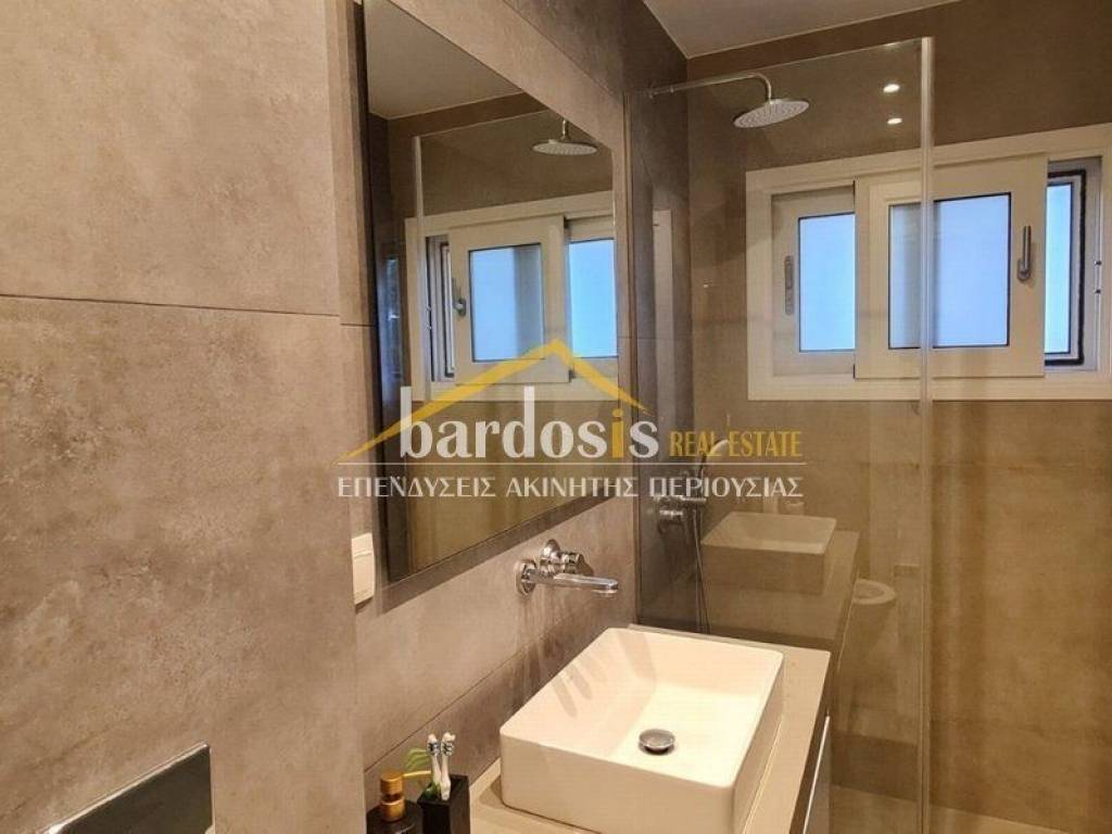 VOULIAGMENI: Apartment 60 sq.m., 1st floor, fully renovated in 2022, bright, modern, in excellent condition, with forest view, features: 1 bedroom with built-in wardrobe, 1 bathroom, living room with tiled floor, open - open kitchen with built-in electrical appliances, aluminum frames, double energy glazing, air conditioning cooling - heating (Code: M-16861) refurbished, individual heating, floors (Floor) tiles, double glazing, energy class Δ, situation (Status) renovated, air conditioning, kitchen (Kitchen) open - Single, without elevator