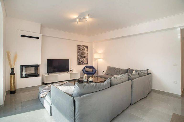 Alimos, Kalamaki, Floor Apartment, 109 sq.m., on plot 422 sq.m., floor: 1rst, 1 level(s), 3 bedroom(s), 1 bathroom(s), 1 WC, 1 kitchen(s), 1 parking, view: Unbounded, year of construction: 2021, property status: Very Good, energy certificate: B+, heating: Autonomous - Petrol, floors: Wooden floors + Tiles, doors: Aluminum, features: Elevator, Security door, Security alarm, Storage room, Fireplace, Double Glazed Windows, Balconies, Pets Allowed, Luxury, Airy, Roadside, Bright, AirConditioning, Solar water system, Back yard (Garden), New Construction. IRG PRO INVESTMENT & RESIDENCY, 59 SKOUFA Str. - KOLONAKI, TEL. 210 3639934, www.irgpro.com, info@irgpro.com