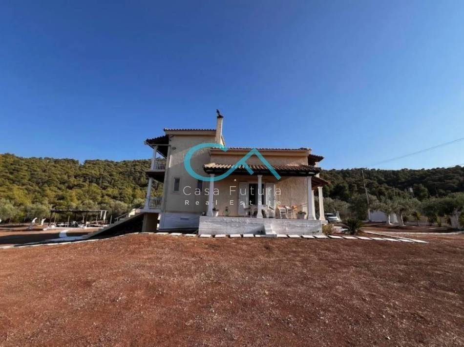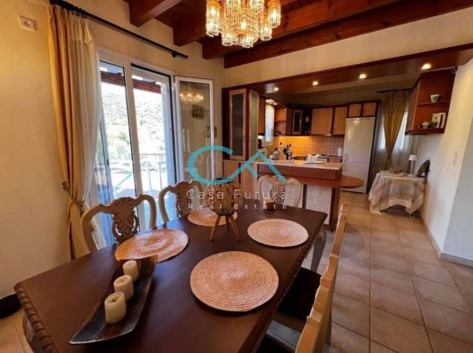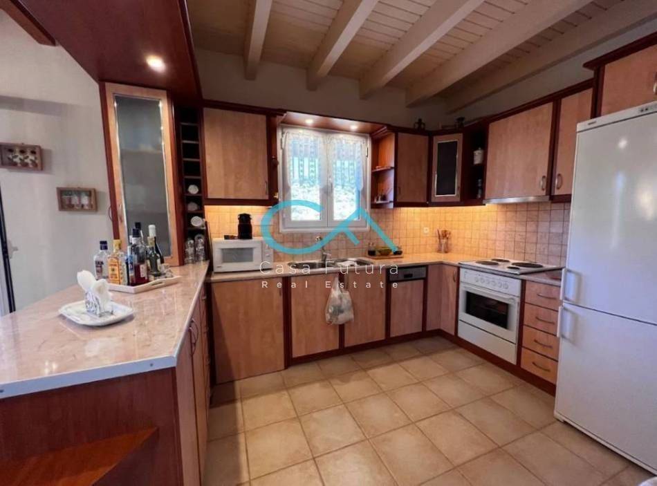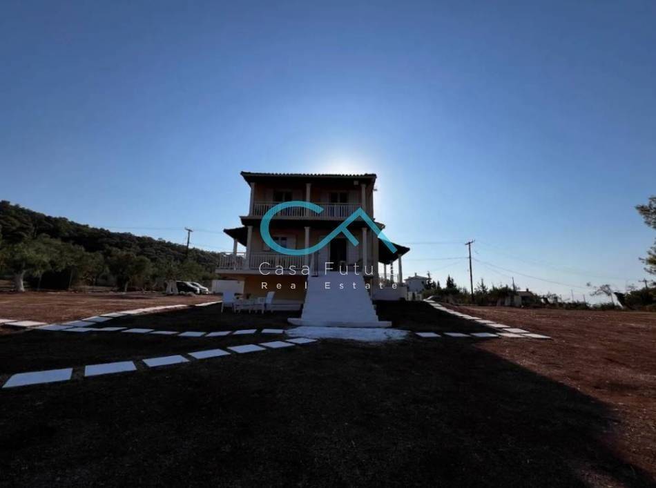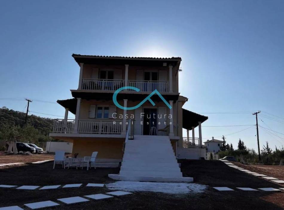 Loutraki, Mylokopi: For sale a bright corner maisonette of 165 sq.m. in 1000 sq.m. frontage plot on the ground floor of 2 levels with autonomous oil heating. It consists of 1 living room kitchen, Garden, storage room and 2 bathrooms. It was built in 2006, painted and has an open view, aluminum frames with double glazing, security door, 4 parking spaces, air conditioning, energy class C, tiled floors, screens, solar water heater. It is ideal for families and pets are allowed. Additional features: Unrestricted View, Garden View, Close to the beach. Price €280,000 Property Code: #30-7565