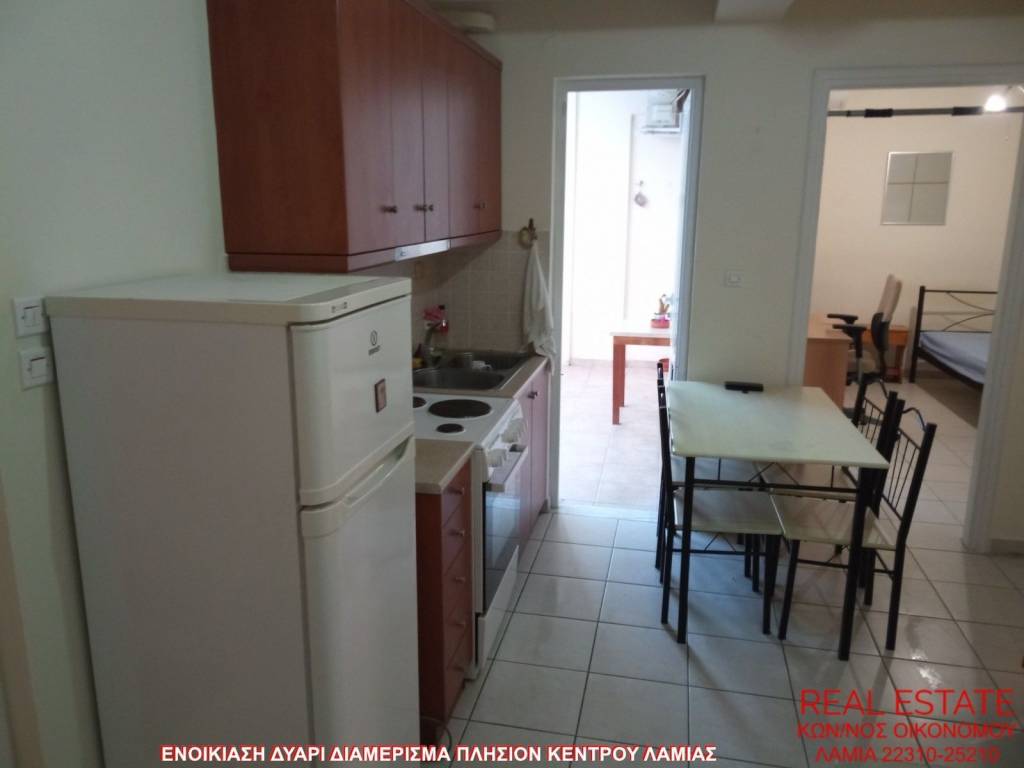 Apartment for rent, in the center of Lamia. It is 45 sq.m., 3rd floor, fully furnished, equipped with household appliances and bright. It consists of an open-plan living room-kitchen, one bedroom and one bathroom. It has air conditioning, aluminum frames, double glazing, screens and a terrace. It is in excellent condition, very close to the central squares of the city and is suitable for students and couples. There is an elevator in the apartment building. Rental price 250 euros.