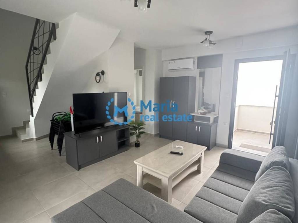 PROPERTY CODE 18146 For sale newly built Maisonette 59 sq.m. in Paralia Ofrinio, Kavala. The maisonette consists of 2 levels. The main entrance is on the 1st floor and includes a living room, 1 bedroom, bathroom and 2 balconies. An internal staircase leads to the upper floor, where there is an open-plan room area, bathroom and 2 balconies. The property has aluminum frames with screens, solar water heater, 3 air conditioners, refrigerator and washing machine. It is delivered fully furnished. Distance from the sea 500 meters.